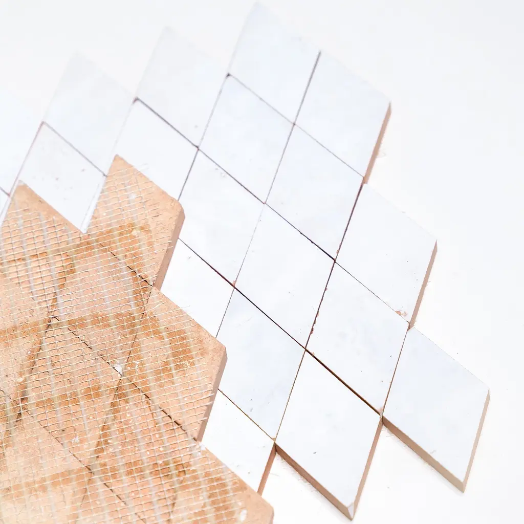 Contemporary Zellige Panels, 12" X 12" X 1/2", Diamond White - Sample Piece