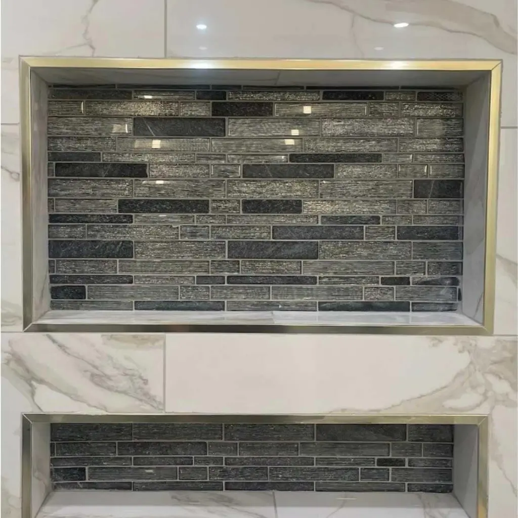 The Tile Life's Cosmos Brick Glass Mosaic series has the smooth, clean finish of glass but still adds visual texture with the reflective metallic pattern. Variations in shades paired with its iridescent, metallic sheen make this tile stand out. Add some shine with this glass series, available in various formats, including a 3" x 6" subway, a hexagon mosaic, and a sleek brick mosaic. FEATURES:DIMENSIONS: