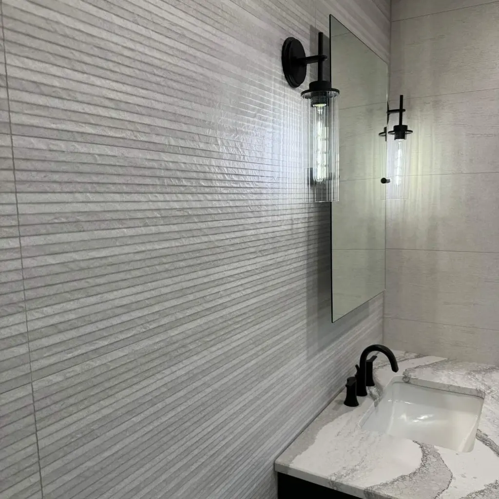 With its 3-dimensional linear look and gentle banding, our Crete Collection is a unique ceramic tile with a distinctive texture and simple beauty. This collection comes in two neutral shades--Gris and Blanco--making it a staple for modern minimalists. Crete is available in two forms: a large-format tile and a matching relief tile, both providing minimal grout lines and a seamless installation. FEATURES: DIMENSIONS: