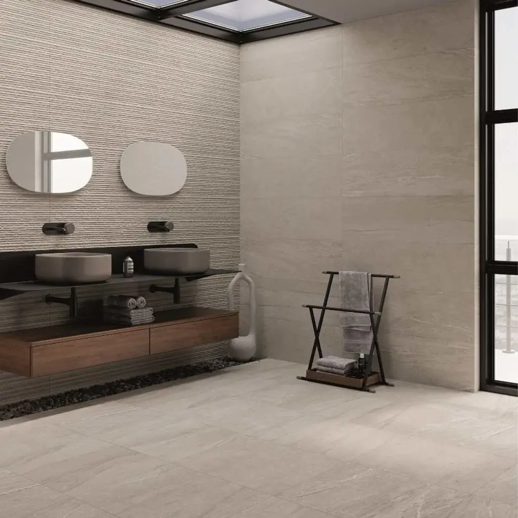 With its 3-dimensional linear look and gentle banding, our Crete Collection is a unique ceramic tile with a distinctive texture and simple beauty. This collection comes in two neutral shades--Gris and Blanco--making it a staple for modern minimalists. Crete is available in two forms: a large-format tile and a matching relief tile, both providing minimal grout lines and a seamless installation. FEATURES: DIMENSIONS: