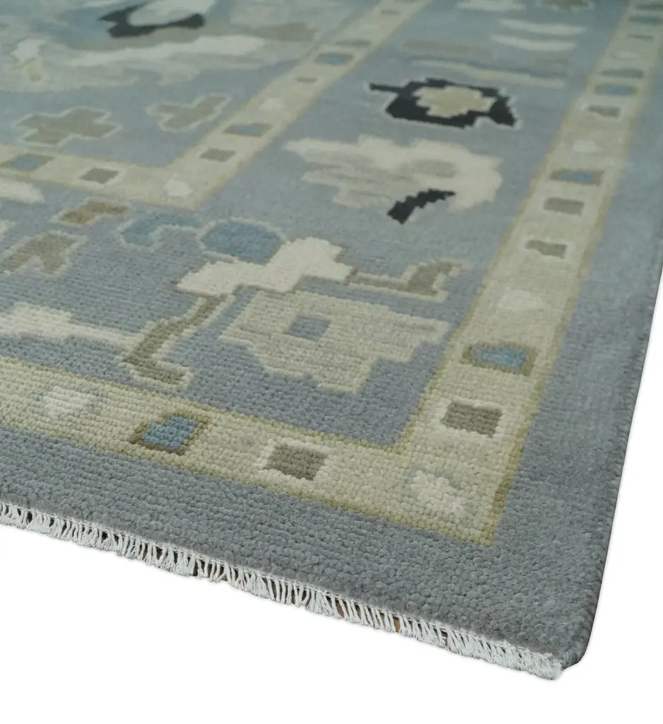This classic traditional Oushak wool area rug will add a timeless elegance to your living space. Featuring antique silver and beige coloring, this hand-knotted rug is offered in Multi Sizes and will provide years of durable service. Hand-Knotted SIZES ARE MADE TO ORDER IN 30-45 DAYS Made with Wool Color : Silver and Ivory Made with 28 knots per square inch Oushak rugs have been made for centuries and carry a tradition and art. This specific rug is made in India, in the city of Bhadohi. Bhadohi is one of the biggest rug manufacturing cities. Carpet weaving in the region dates back to the 16th century during the reign of Akbar. The skilled artisans of Bhadohi have been carrying the tradition of rug-making for centuries. USERS GUIDE Avoid prolonged moisture Vacuum regularly and/or shake to remove dust Do not pull any loose threads. Use scissors to simply cut the ends The blot spills immediately with a white cloth. Harsh chemicals may damage or fade the rug Use rug protectors under heavy furniture