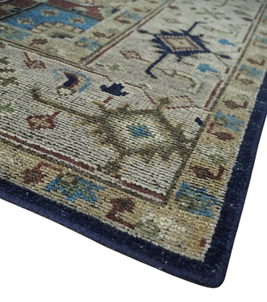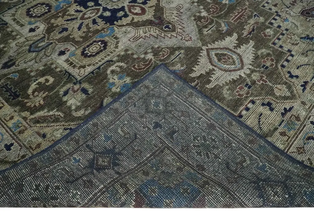 Custom Made Antique Style Brown, Beige And Blue Traditional Wool Area Rug - 1X1 Swatch