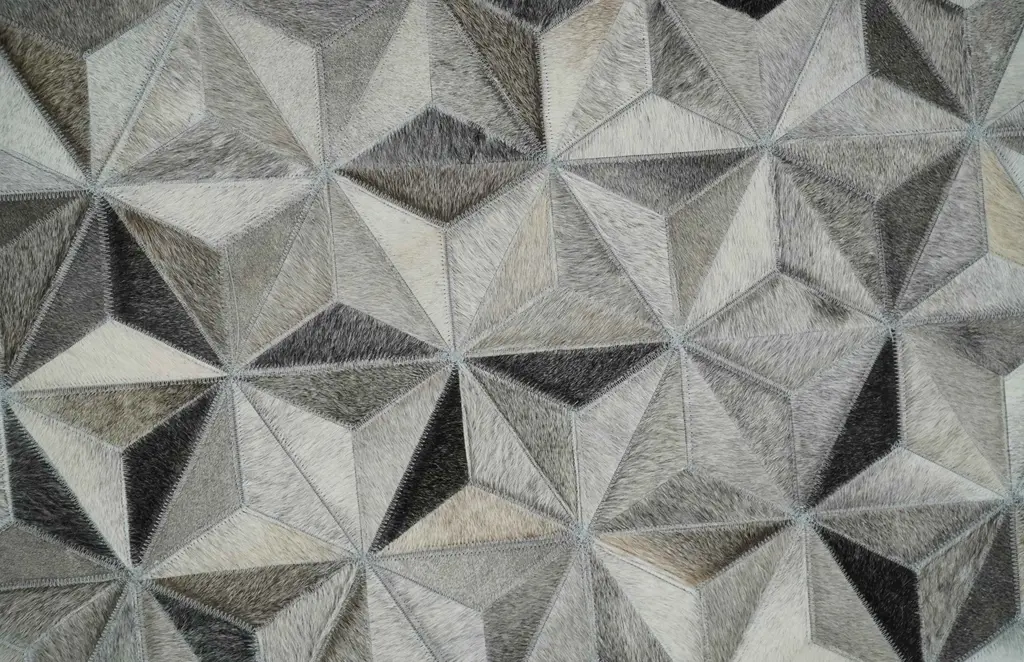 Custom Made Cowhide Leather Patchwork Silver And Gray Leather Modern Geometric Rug - 1X1 Swatch