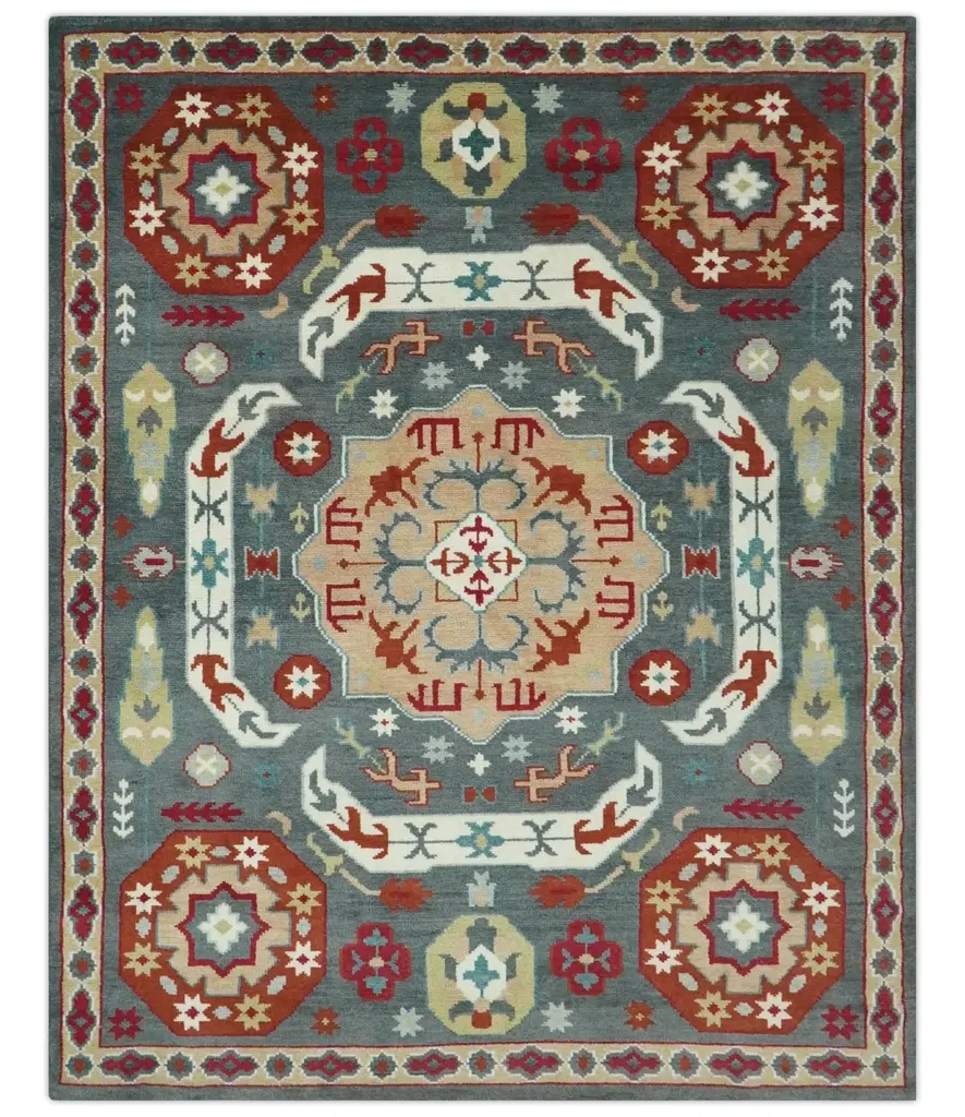 Expertly crafted with a traditional Mamluk design, this custom-made wool rug features a stunning combination of Gray, rust, and peach colors. The intricate medallion pattern adds a touch of elegance and warmth to any room. Experience luxurious comfort and timeless style with this unique piece. Hand-Knotted Made with Wool Sizes are made to order in 30-45 days Color: Gray, Rust and Peach USERS GUIDE Avoid prolonged moisture Vacuum regularly and/or shake to remove dust Do not pull any loose threads. Use scissors to simply cut the ends The blot spills immediately with a white cloth. Harsh chemicals may damage or fade the rug Use rug protectors under heavy furniture