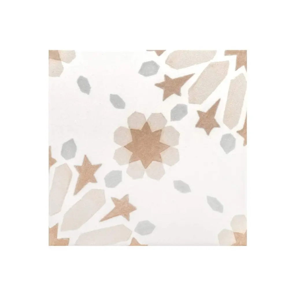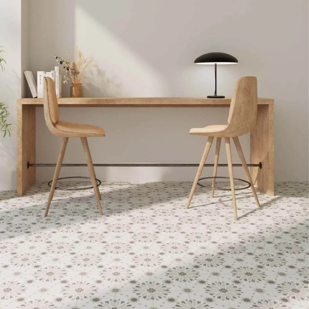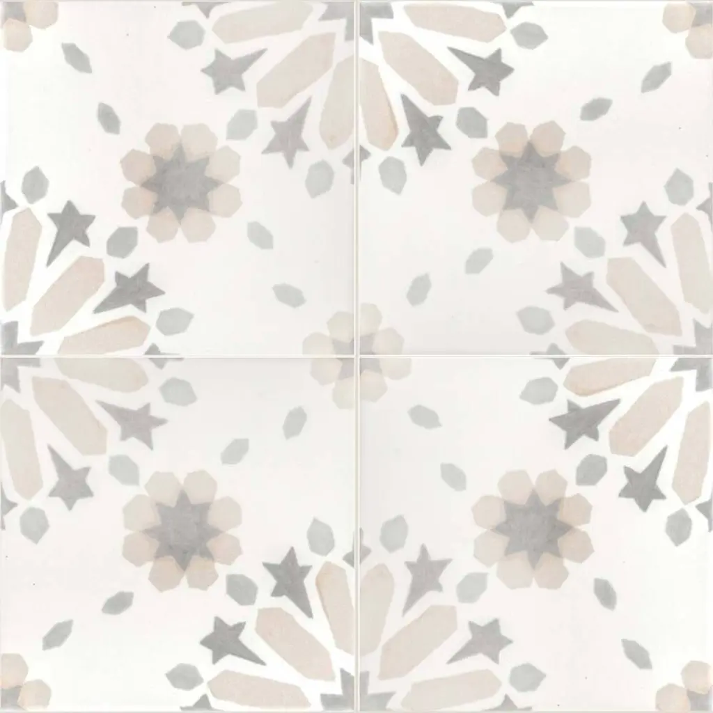 The Dhalia collection unfolds like a blooming flower, with intricate patterns that bring a sense of movement and artistry to any space. Made in Spain from durable porcelain with a sleek matte finish, these 6x6 tiles are designed for both indoor and outdoor use. The collection comes in four versatile shades—Beige, Blue, Grey, and Noir—each enhancing the delicate yet bold floral-inspired design. Whether creating a striking feature wall or adding character to a patio, Dhalia offers a balance of refinement and natural beauty in every tile. FEATURES: A case of this product includes 25 pieces and covers 6.03 square feet Porcelain, singular, geometric, encaustic, floral, patterned, matte, pressed, straight edge floor and wall tile Impervious and waterproof; Withstands sun and rain Matte finish with a shade 1 rating/ variation (V1 uniform appearance) Made in Spain Constructed from durable, long-lasting porcelain Features a sleek matte finish for a contemporary look Available in four stylish colors: Beige, Blue, Grey, and Noir Modern encaustic patterned design Convenient 6"x6" size for versatile installation options Perfect for both interior and exterior spaces This product has a PEI rating of 3 (endurance and hardness indicator) and therefore is suited for residential countertops, walls, and medium-traffic floors Ideal for backsplashes, bathrooms, showers, kitchens, outdoors, pools, floors, walls Approved for residential and commercial installations Easy to install 6 inches x 6 inches decorative geometric, floral pattern porcelain floor and wall tile DIMENSIONS: Individual tile size: 6 inches L x 6 inches W Surface area per carton: 6.03 square feet Sample tile size: Full size 6 inches L x 6 inches W