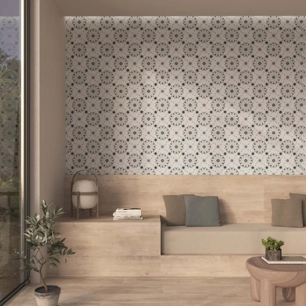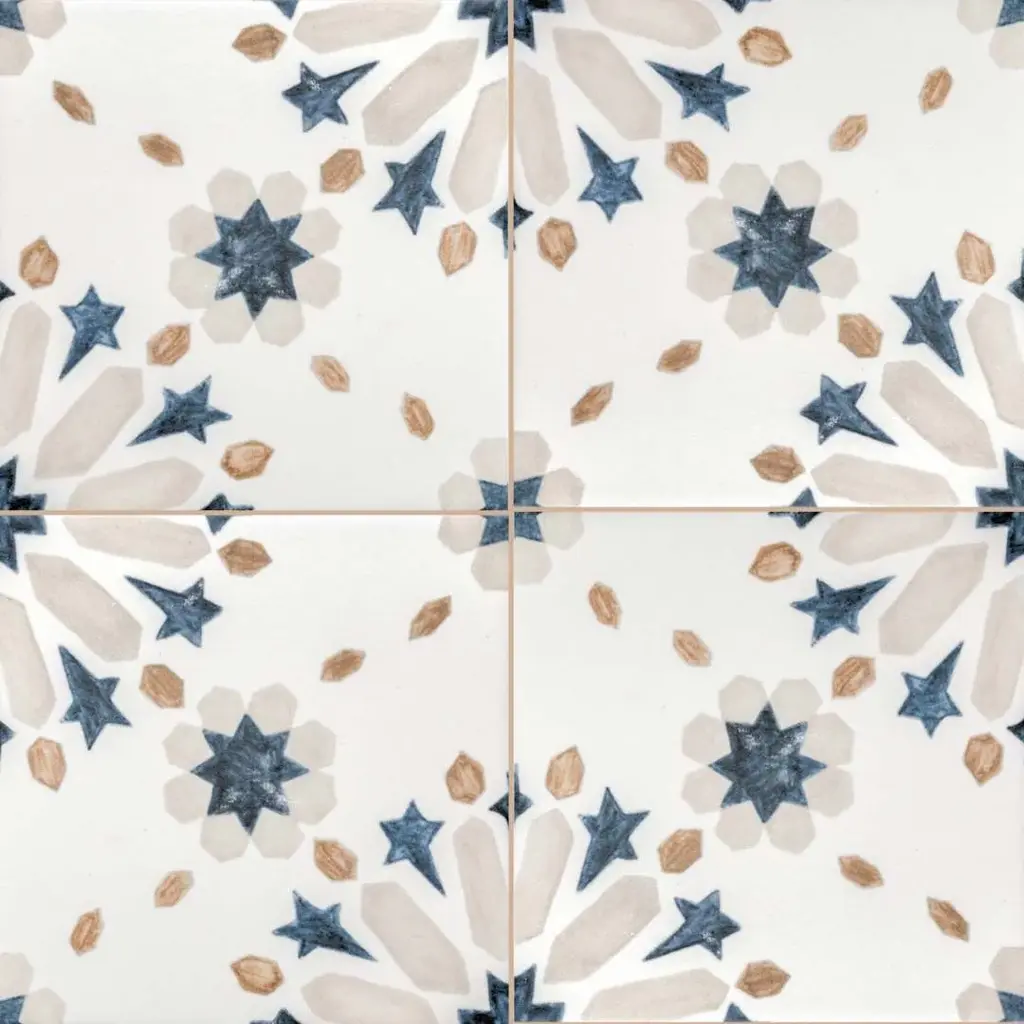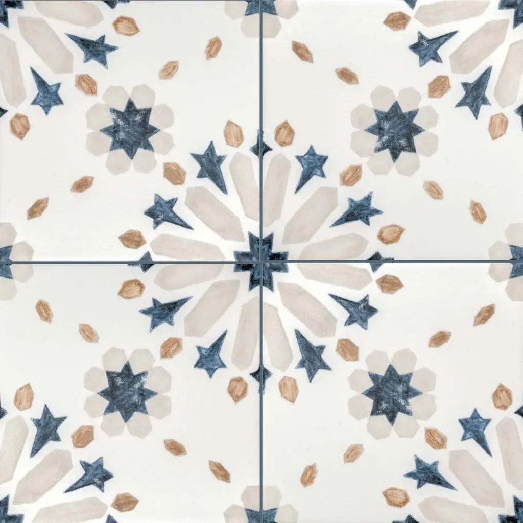 The Dhalia collection unfolds like a blooming flower, with intricate patterns that bring a sense of movement and artistry to any space. Made in Spain from durable porcelain with a sleek matte finish, these 6x6 tiles are designed for both indoor and outdoor use. The collection comes in four versatile shades—Beige, Blue, Grey, and Noir—each enhancing the delicate yet bold floral-inspired design. Whether creating a striking feature wall or adding character to a patio, Dhalia offers a balance of refinement and natural beauty in every tile. FEATURES: A case of this product includes 25 pieces and covers 6.03 square feet Porcelain, singular, geometric, encaustic, floral, patterned, matte, pressed, straight edge floor and wall tile Impervious and waterproof; Withstands sun and rain Matte finish with a shade 1 rating/ variation (V1 uniform appearance) Made in Spain Constructed from durable, long-lasting porcelain Features a sleek matte finish for a contemporary look Available in four stylish colors: Beige, Blue, Grey, and Noir Modern encaustic patterned design Convenient 6"x6" size for versatile installation options Perfect for both interior and exterior spaces This product has a PEI rating of 3 (endurance and hardness indicator) and therefore is suited for residential countertops, walls, and medium-traffic floors Ideal for backsplashes, bathrooms, showers, kitchens, outdoors, pools, floors, walls Approved for residential and commercial installations Easy to install 6 inches x 6 inches decorative geometric, floral pattern porcelain floor and wall tile DIMENSIONS: Individual tile size: 6 inches L x 6 inches W Surface area per carton: 6.03 square feet Sample tile size: Full size 6 inches L x 6 inches W