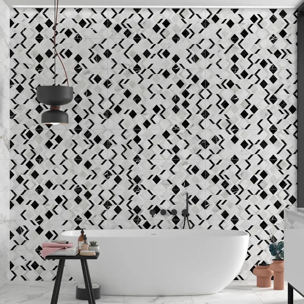 Among the novelties of polished marble, we highlight Decadence, the most iconic and traditional Carrara marble, thanks to its elegance and use. We chose a classic material but with a contemporary, renewed aesthetic. The alternating patterns, shapes, and colors offer this tile endless decorative possibilities. The Tile Life's Decadence is presented on a ceramic body with a stunning glossy finish. FEATURES: DIMENSIONS: