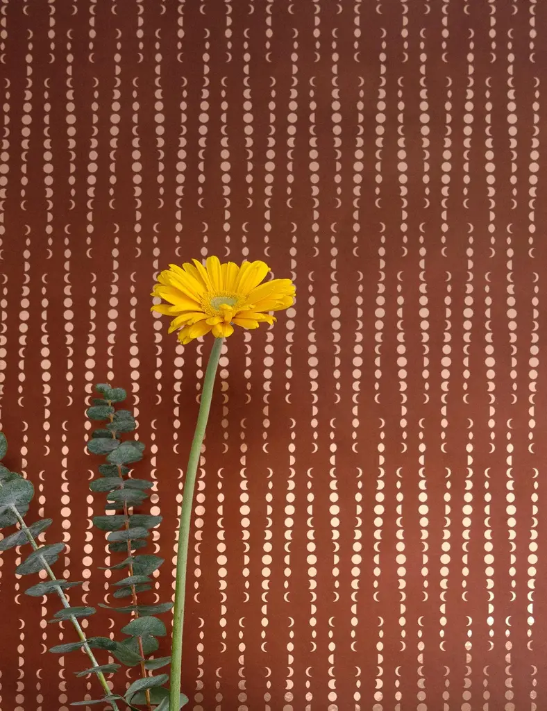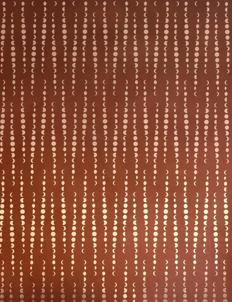 This ikat-reminiscent pattern balances the moon in its fluctuating forms, reflecting the passing of time as it rises, sets and spins. Printed on metallic type II.Note: This product is sold by the square foot.Measures: Width print area 52 inches (132.1 cm)Length sold by the square foot (30.48 cm2)Design match: StraightPrint method: Digital with water-based latex inks.Lead time: Please allow for 6-8 week lead time.Fire rating: Class “A” fire rated – tested in accordance with ASTM-E84 tunnel test NFPA-101 (passed).NFPA Life Safety Code 101: Class ANFPA 286 corner burn test: Class ABS476 parts 6 & 7: Passed all requirements.CAN/ULC-S 102.2: Passed all requirements.EU class flame (EN15102): Passed class B, S2Environmental details: Made with low VOC vinylTested per CA-1350 air quality standards cadmium and lead free formulation.