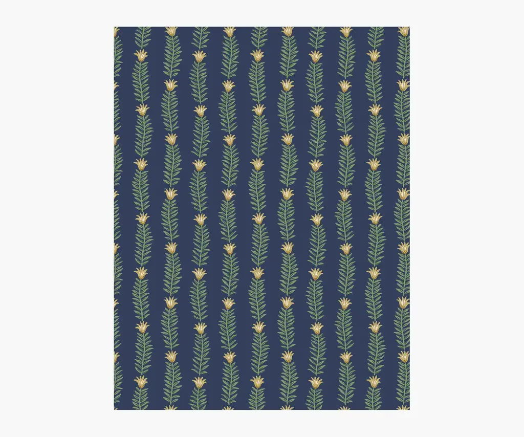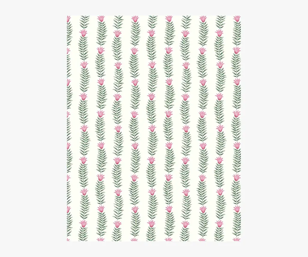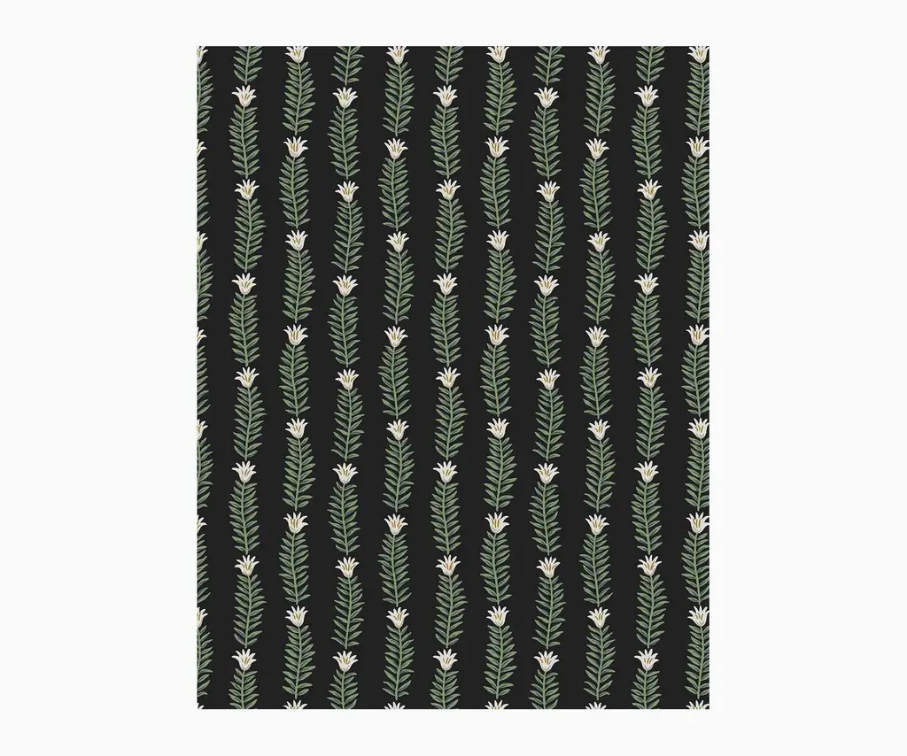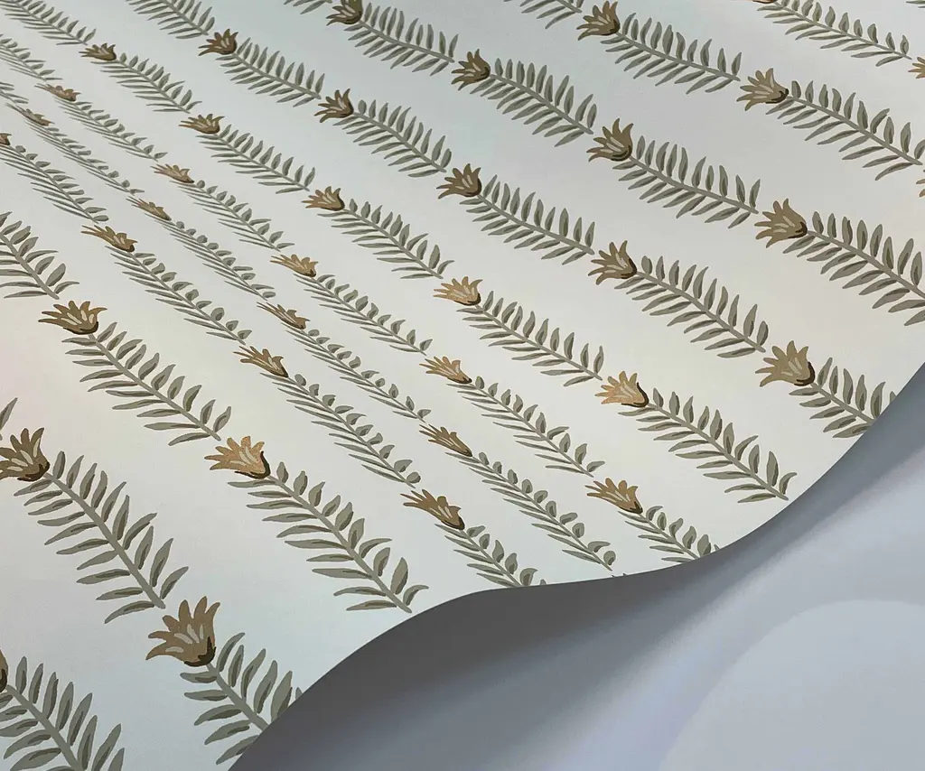 8 × 10" sample of our Eden wallpaper. The flowers and leaves of Eden are arranged end-to-end to create a delicate, organic stripe. The wavy tendrils of leaves are punctuated by single, stylized blooms. This wallpaper is screen printed and comes in 27 inch rolls with a 25.25 inch repeat. Please note that wallpaper samples are cut at random, and pattern placement of the sample you receive will not match the photo featured here.