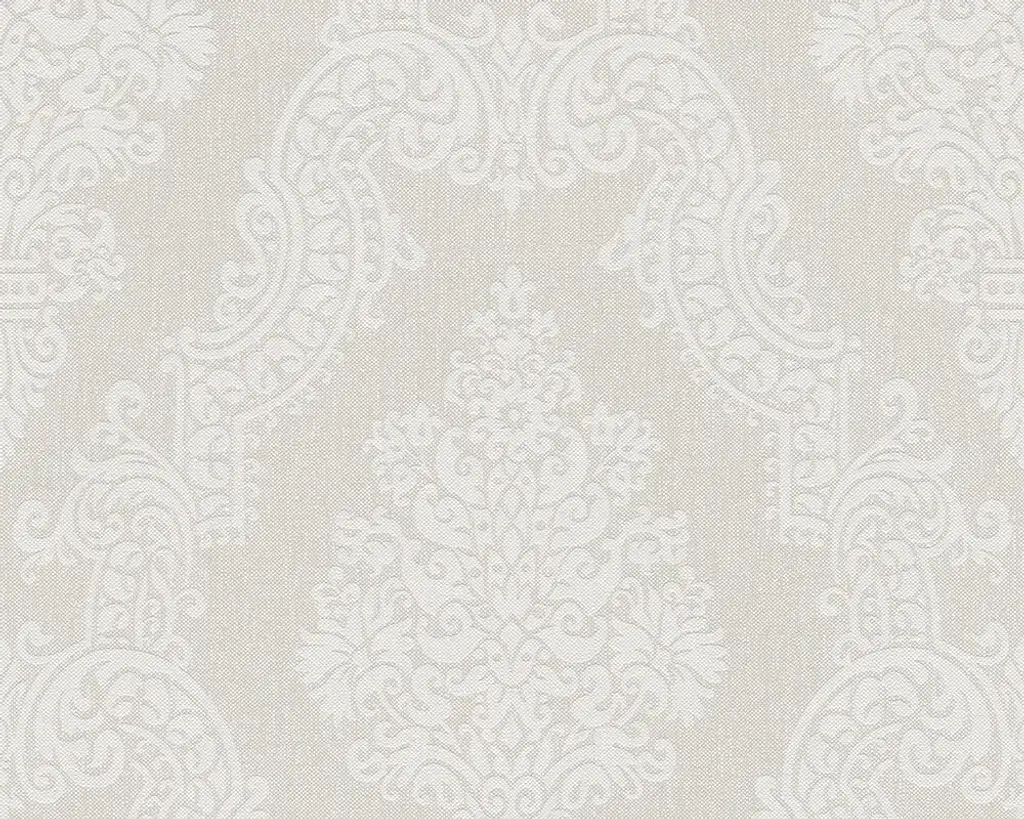 Elegance2, Modern Accent Block Stripes Baroque White Wallpaper Sample