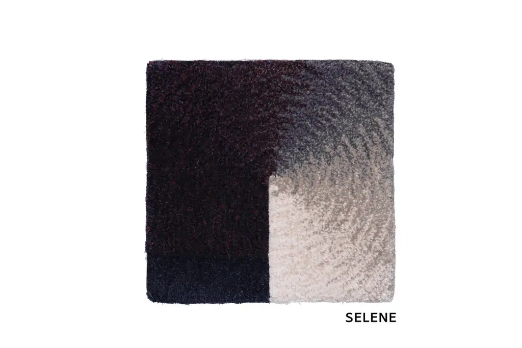 EOS & SELENE collection rug sample. Price is for 1 sample sized 30x30cm (12x12 inches). Please specify the name of the design that you would like to purchase a sample for, EOS or SELENE.The rug collection EOS & SELENE is a playful statement on forms and colors. The geometry of the abstract forms is followed by the direction of the radial gradient among colors, creating a distinctive mood.