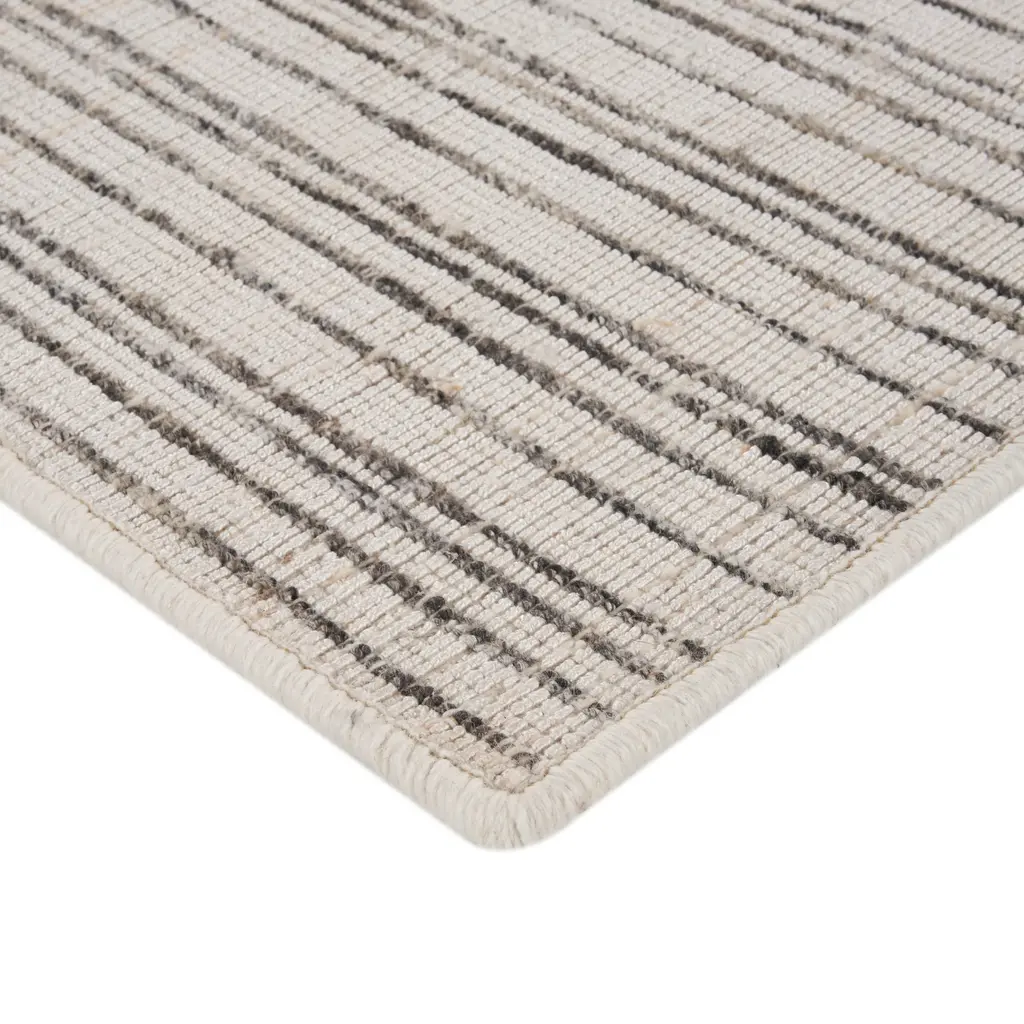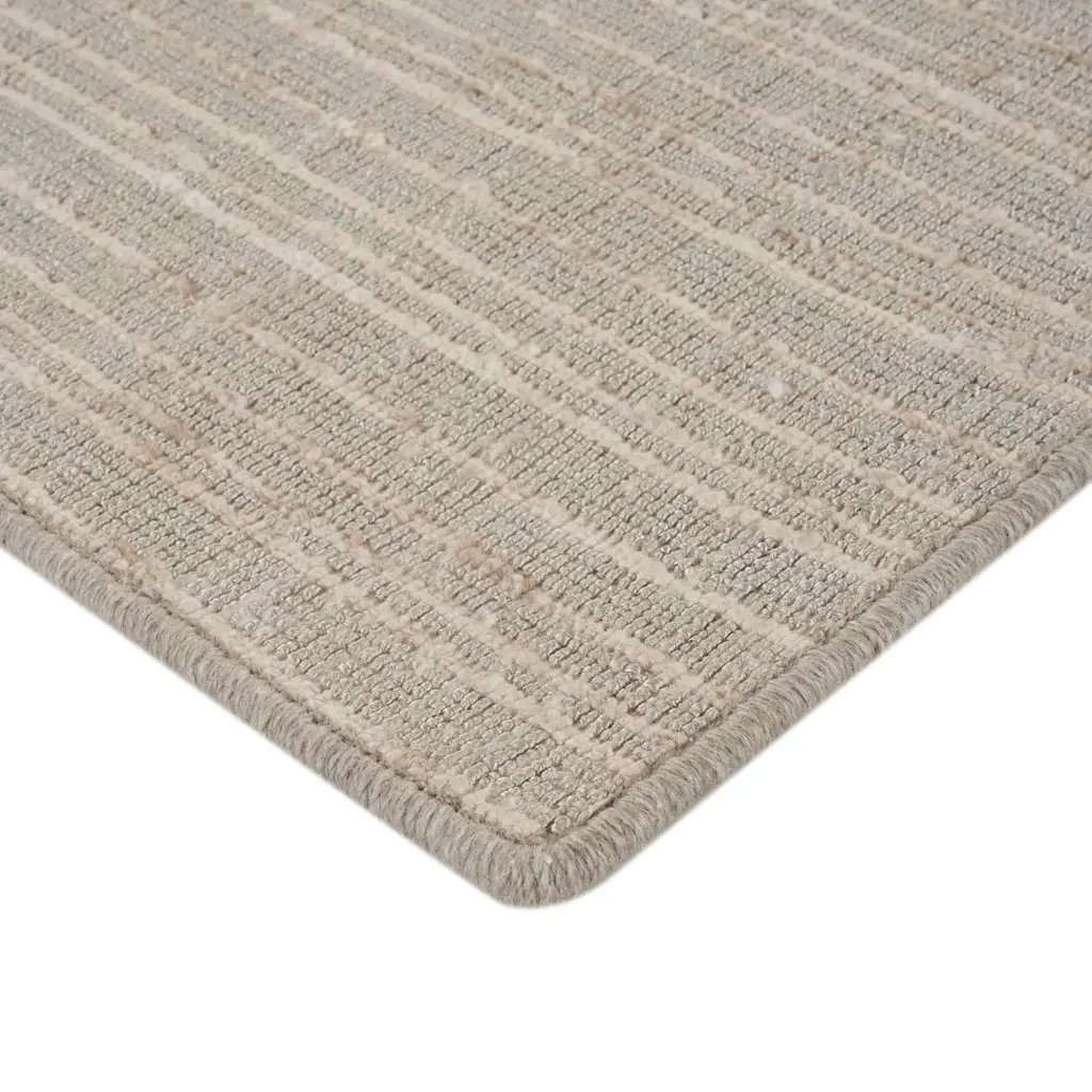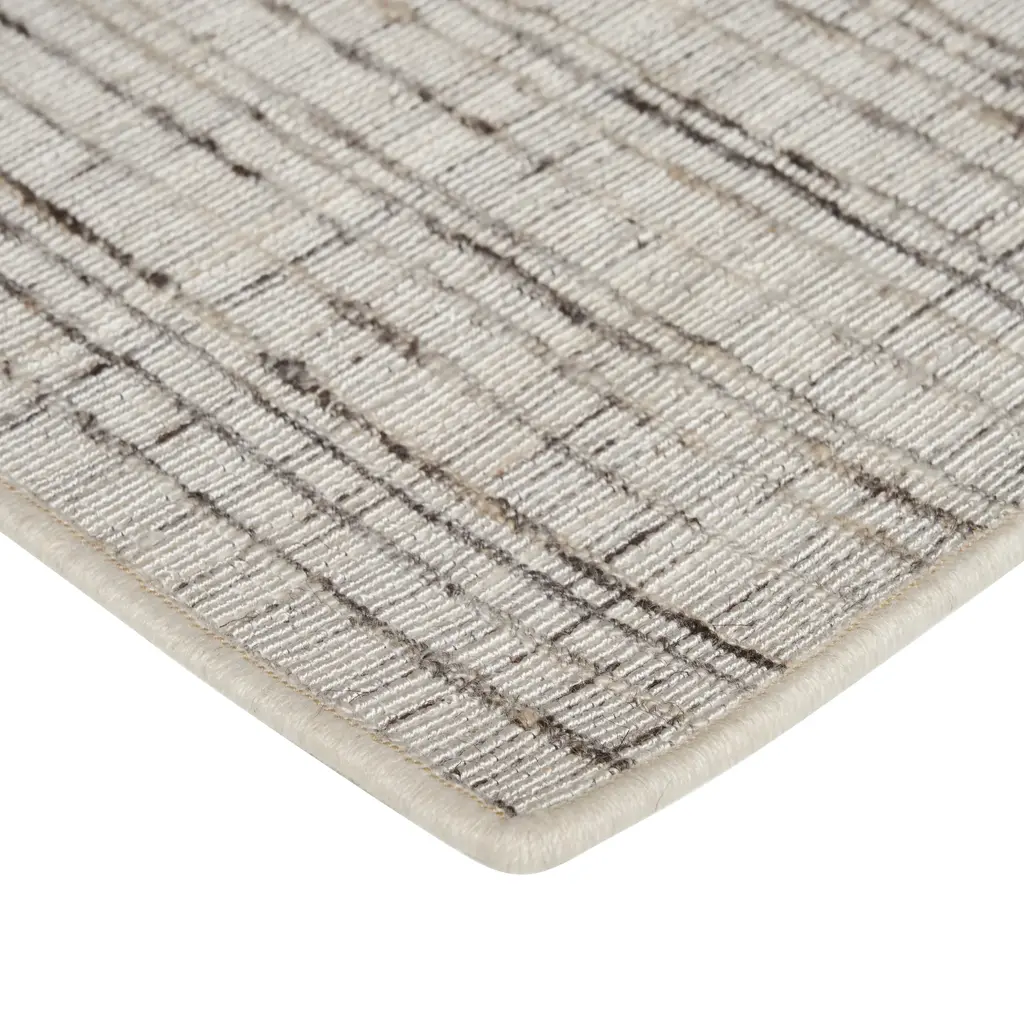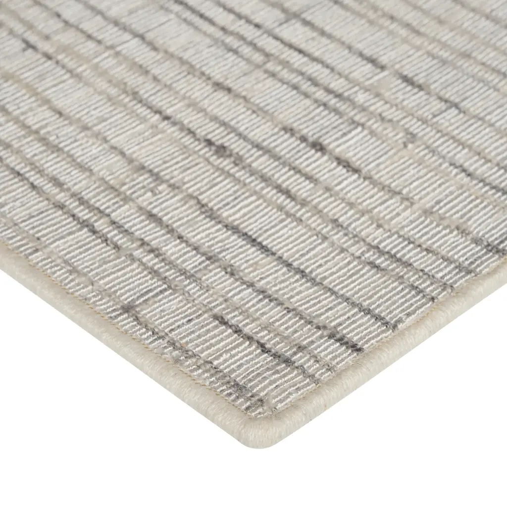 The Estate Swatch serves as a representative sample, allowing for evaluation of a larger product's material, color, and texture. It features a charcoal color, presenting a multi-tonal gray palette that includes lighter and darker variations. The swatch exhibits a textured linear pattern, achieved through varying pile heights that add visual depth to its surface. A neatly finished edge defines its construction. This swatch is crafted from a blend of 25% wool, 60% viscose, and 15% polyester. This combination integrates the natural durability of wool, the soft touch and subtle sheen of viscose, and the resilience and stain resistance of polyester. Manufactured in the USA, this item demonstrates domestic production standards. Its modern design and versatile color palette allow it to complement various interior styles, ranging from contemporary to transitional settings. The Estate Swatch aids in confident material and color selection for home or commercial projects.