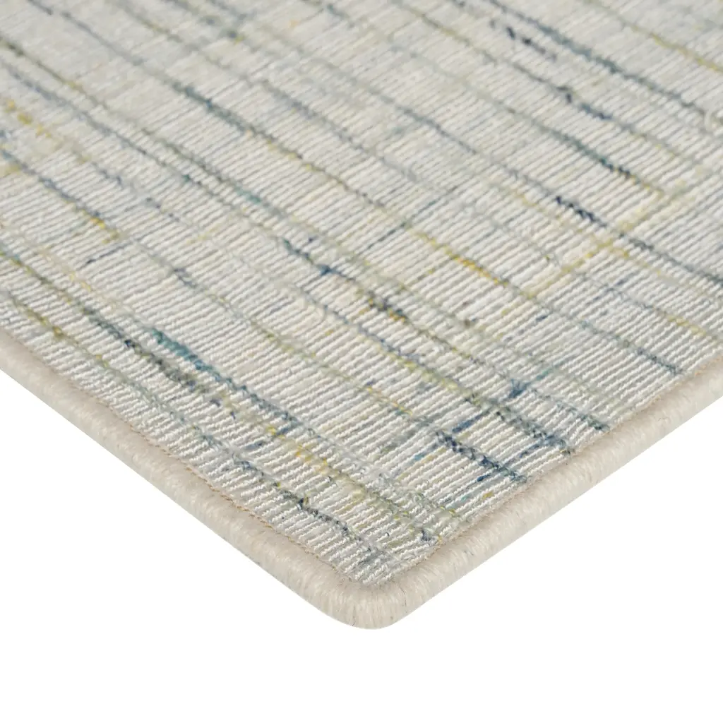 The Estate Swatch serves as a representative sample, allowing for evaluation of a larger product's material, color, and texture. It features a charcoal color, presenting a multi-tonal gray palette that includes lighter and darker variations. The swatch exhibits a textured linear pattern, achieved through varying pile heights that add visual depth to its surface. A neatly finished edge defines its construction. This swatch is crafted from a blend of 25% wool, 60% viscose, and 15% polyester. This combination integrates the natural durability of wool, the soft touch and subtle sheen of viscose, and the resilience and stain resistance of polyester. Manufactured in the USA, this item demonstrates domestic production standards. Its modern design and versatile color palette allow it to complement various interior styles, ranging from contemporary to transitional settings. The Estate Swatch aids in confident material and color selection for home or commercial projects.