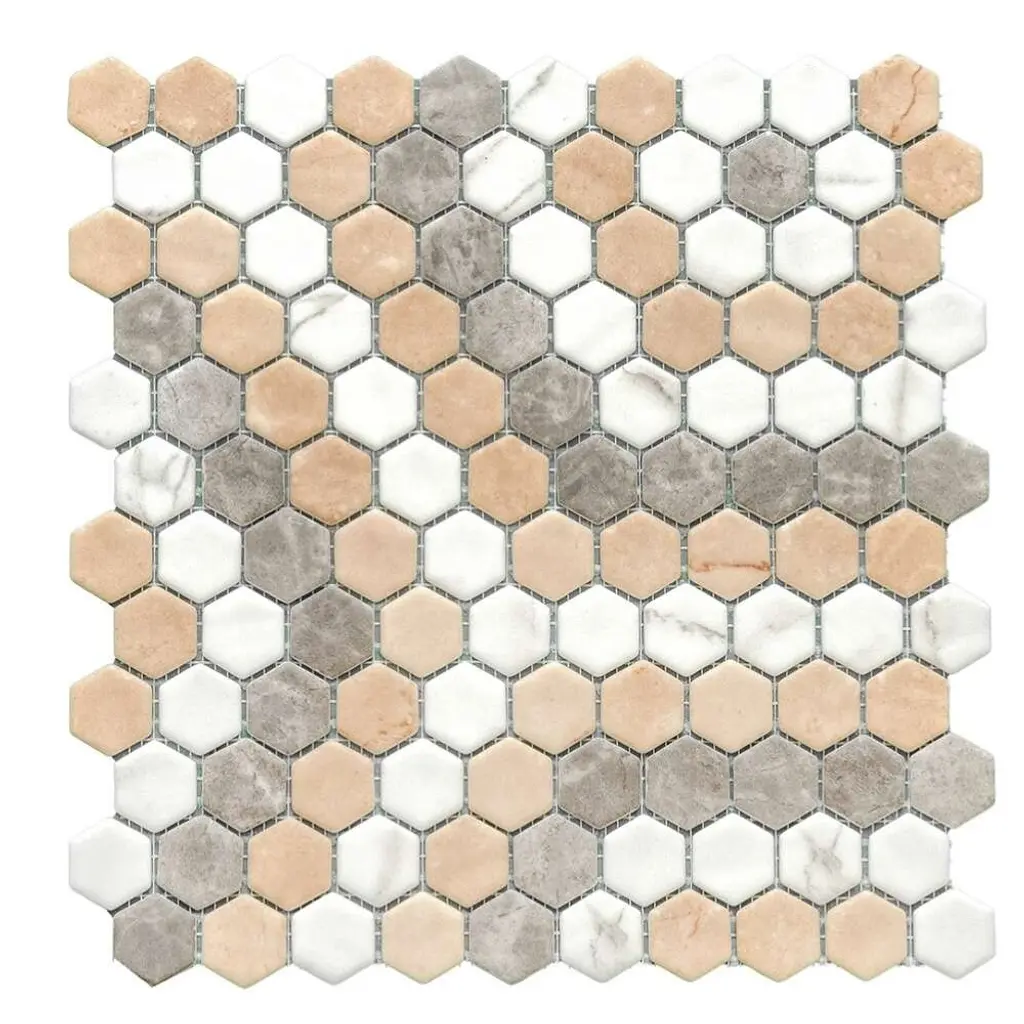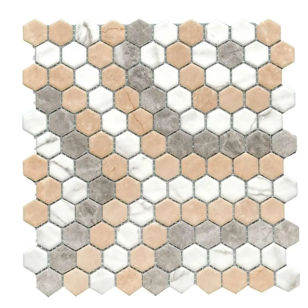 Carefully designed combinations of timeless hex in neutral tones and subtle details are designed to enhance any residential project and maintain its originality. Made and designed in Spain, this 98% recycled, sustainable mosaic is meant for both floor and wall applications while also being suitable for dry, pool, or wet areas. The Tile Life's Eterna Hex Glass Mosaic collection stands the test of time and provides your home with long-lasting beauty.FEATURES:DIMENSIONS: