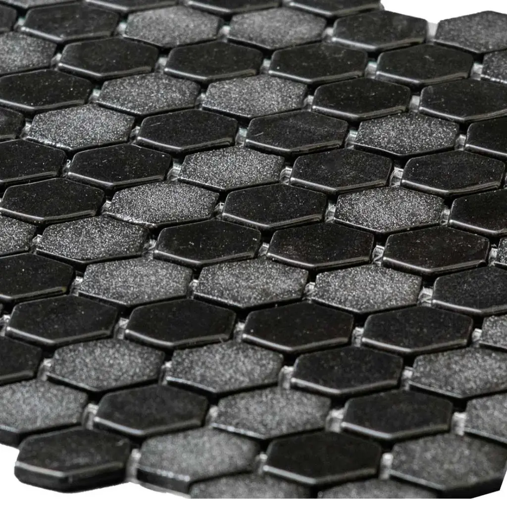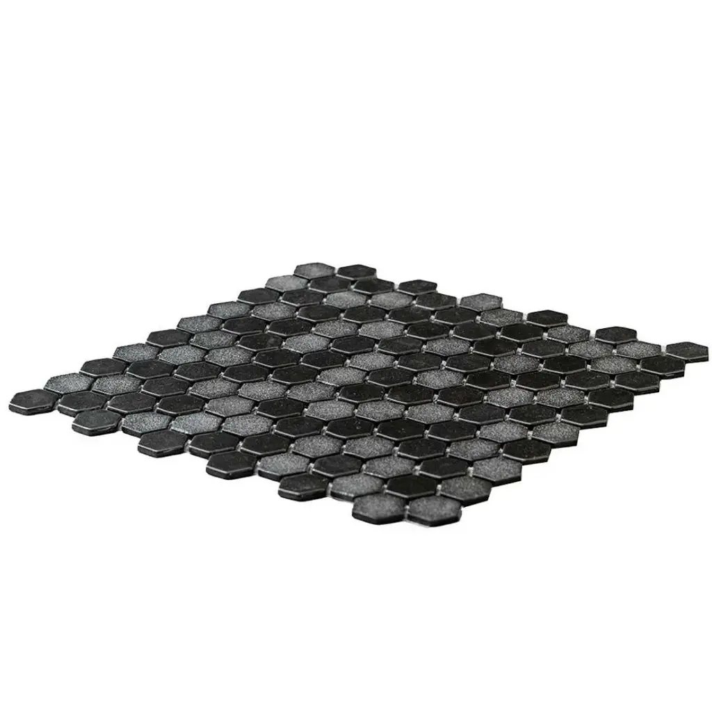Eterna Hex 1" X 1" Glass Mosaic Floor And Backsplash Wall Tile - 4X4 Sample - Stone/ Lisa Black