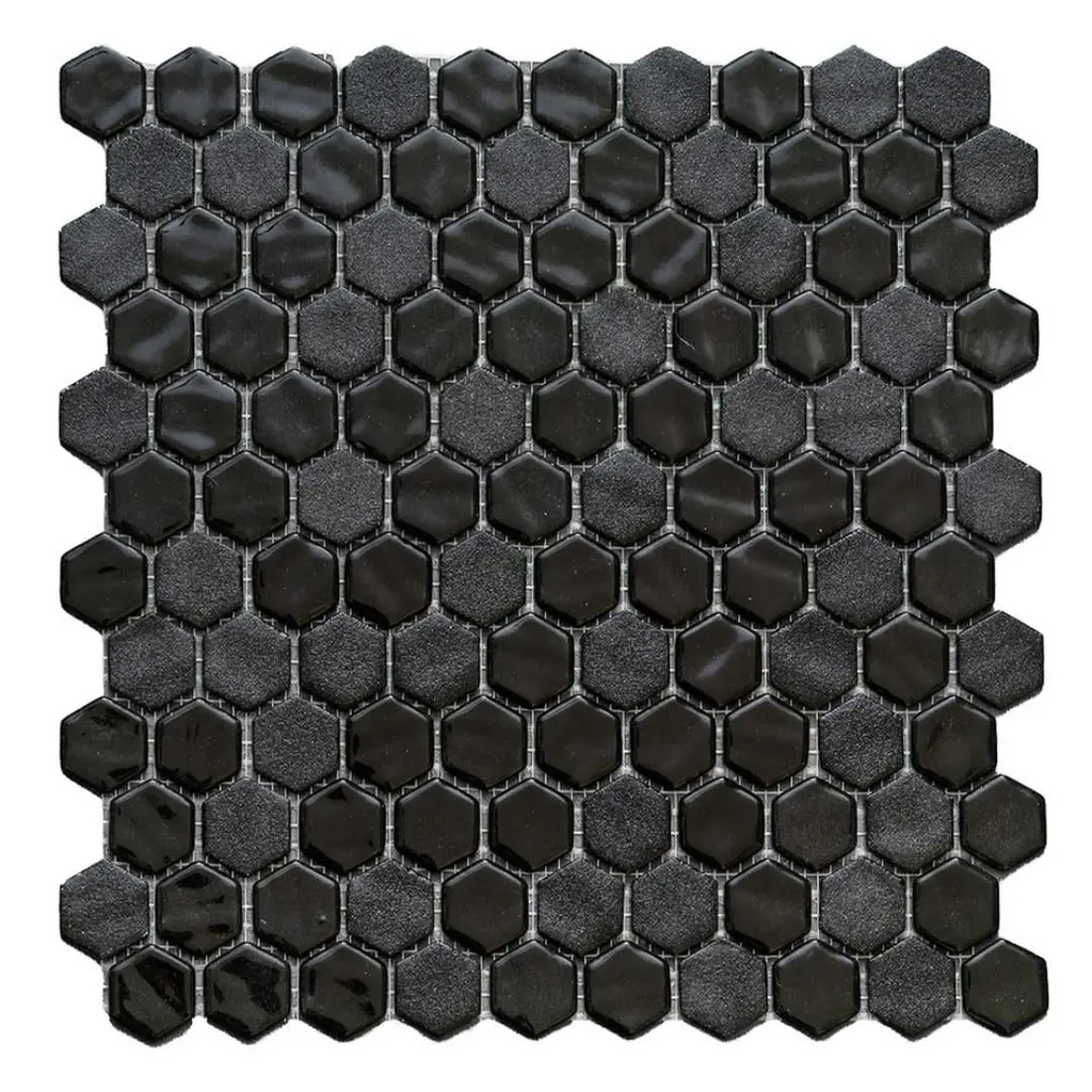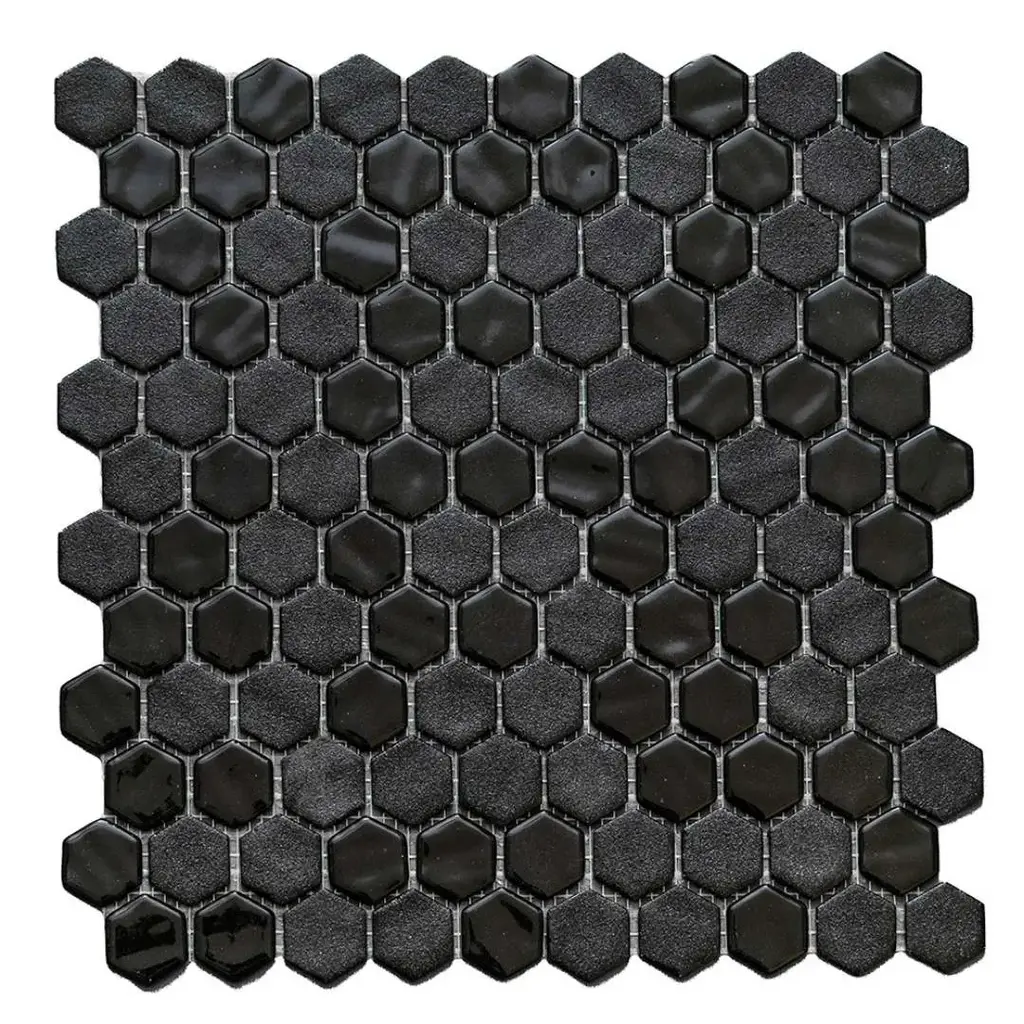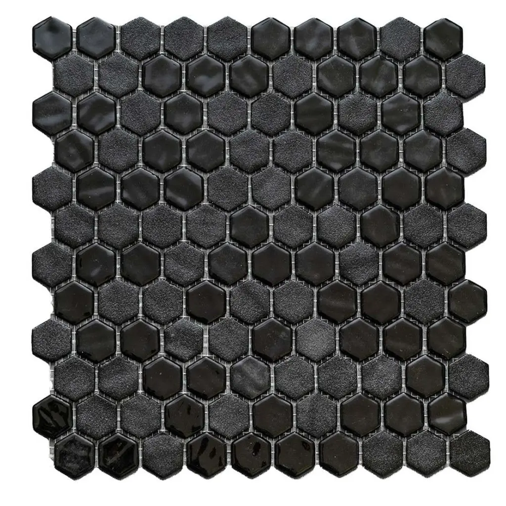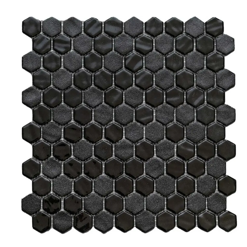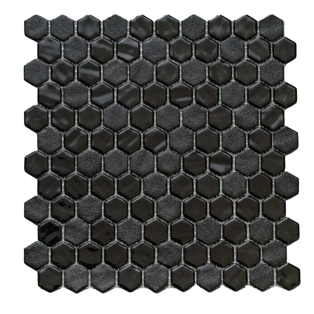 Carefully designed combinations of timeless hex in neutral tones and subtle details are designed to enhance any residential project and maintain its originality. Made and designed in Spain, this 98% recycled, sustainable mosaic tile is meant for both floor and wall applications while also being suitable for dry, pool, or wet areas. This glass mosaic tile comes in various colors, all offering their own unique style and variation. The Tile Life's Eterna Hex 1 inch x 1 inch Glass Mosaic Floor and Wall Tile collection stands the test of time and provides your home with long-lasting beauty. FEATURES:DIMENSIONS: