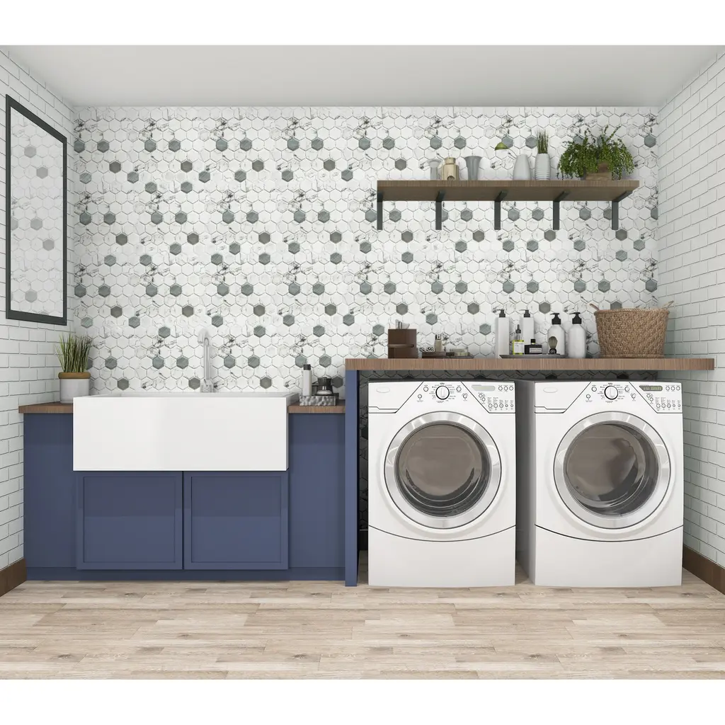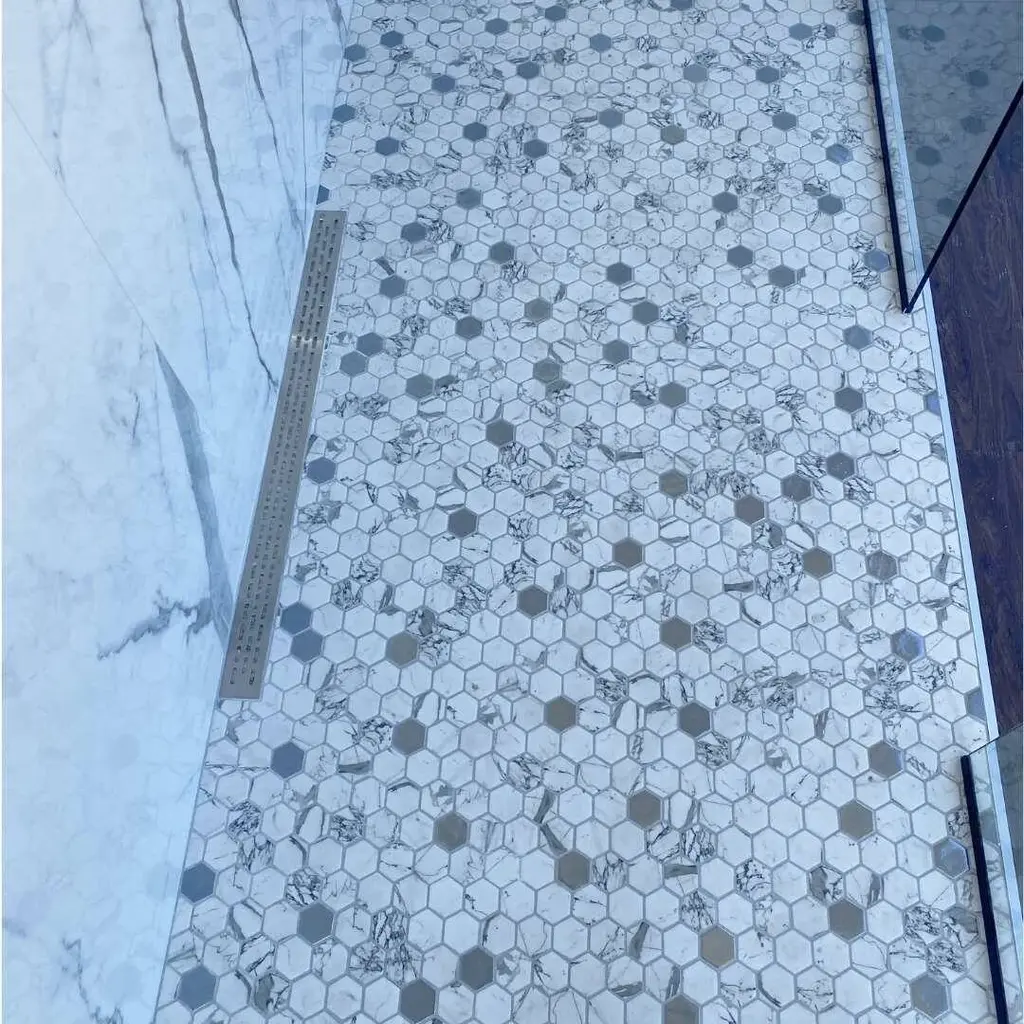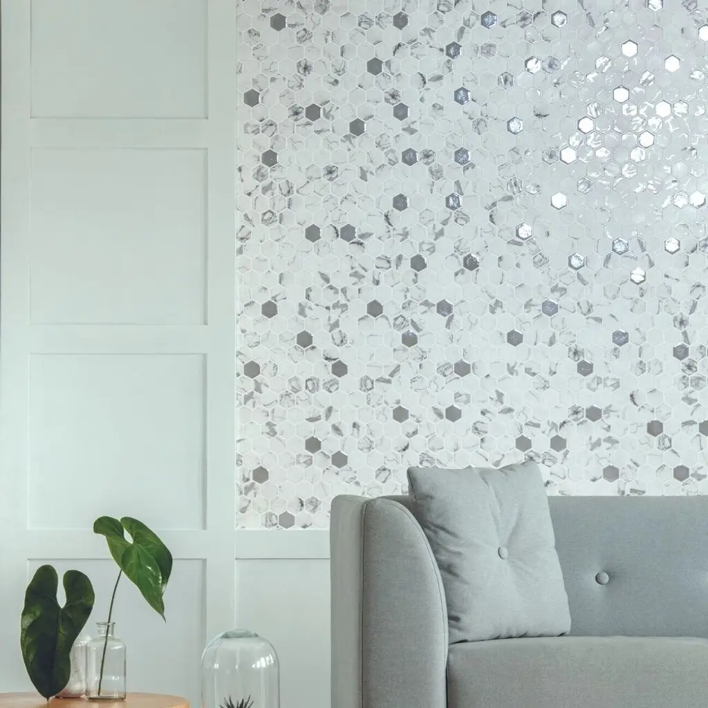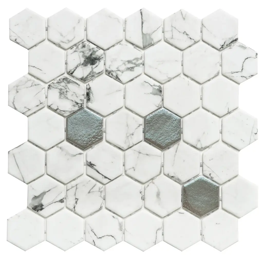 Looking for a unique multicolored checked tile? Check out The Tile Life's Eterna Hex Mosaic for beautiful multicolored patterned tile. This mosaic collection features a stunning combination of elegant marble and stone textures covering each mosaic, creating endless possibilities and combinations for decorating your environment. A grain that recalls the marble finesse and realistically recreates the stones, taking us to its natural origin. Made and designed in Spain, this 98% recycled, sustainable mosaic is meant for both floor and wall applications and is suitable for pools and dry and wet areas. FEATURES:DIMENSIONS: