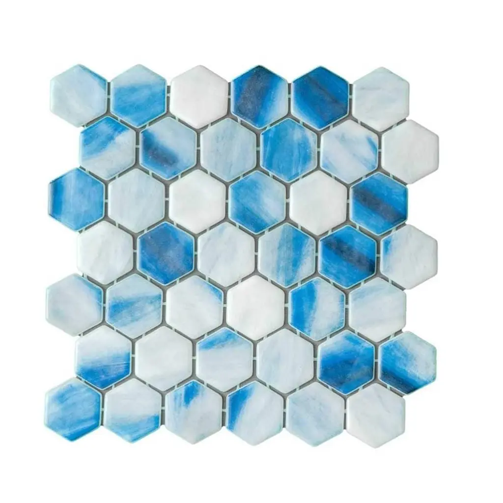 Looking for a unique multicolored checked tile? Check out The Tile Life's Eterna Hex Mosaic for beautiful multicolored patterned tile. This mosaic collection features a stunning combination of elegant marble and stone textures covering each mosaic, creating endless possibilities and combinations for decorating your environment. A grain that recalls the marble finesse and realistically recreates the stones, taking us to its natural origin. Made and designed in Spain, this 98% recycled, sustainable mosaic is meant for both floor and wall applications and is suitable for pools and dry and wet areas. FEATURES:DIMENSIONS:
