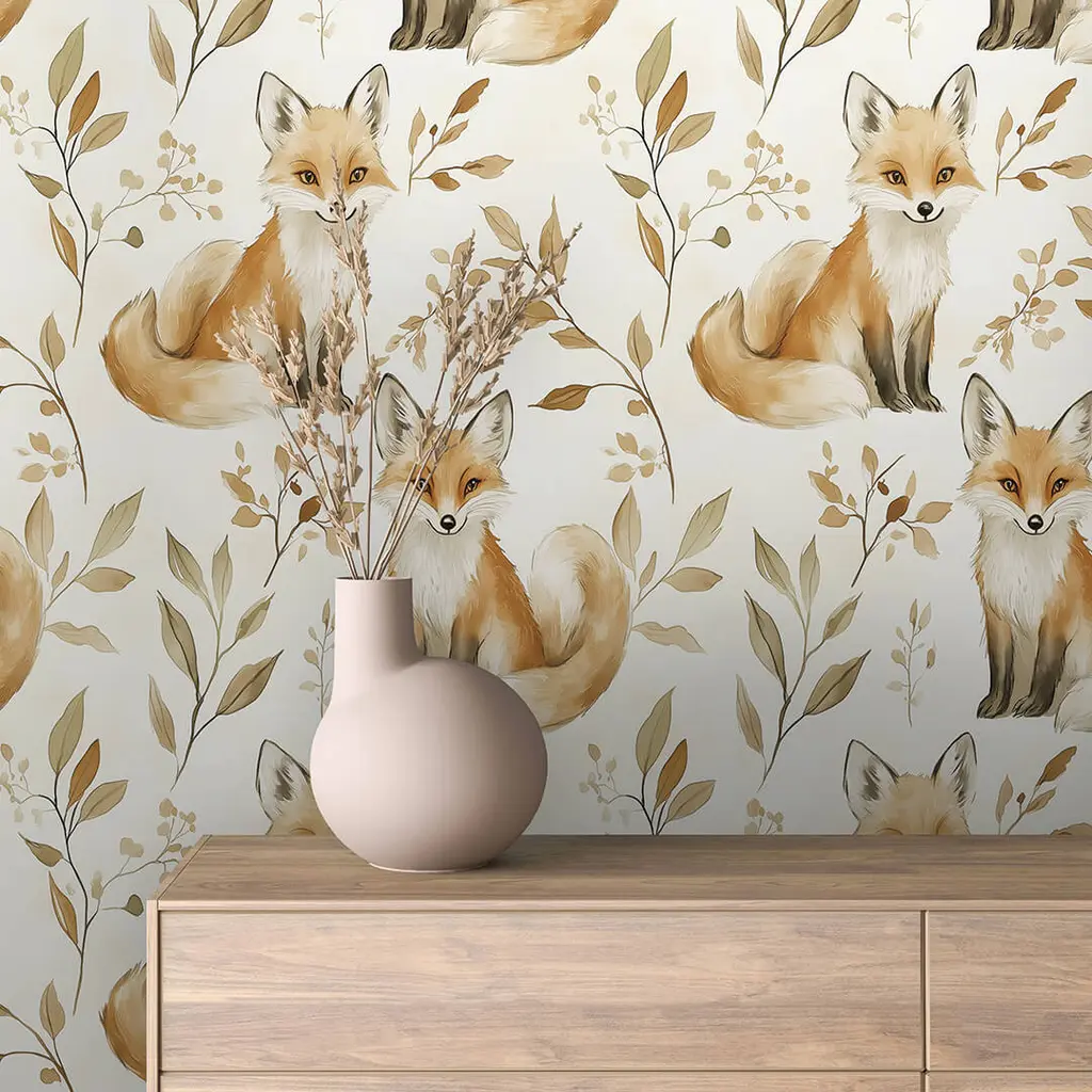Fablewood Fox & Foliage Invite the charm of the woodlands into your home with this delightful wallpaper. Featuring whimsical foxes rendered in a soft watercolor style against delicate foliage, its warm palette of burnt orange and earthy neutrals creates a cozy, enchanting atmosphere perfect for a nursery or child's bedroom. You can select from a Peel and Stick Smooth or Canvas Texture Vinyl option, or choose Light Textured Peel and Stick Fabric Wallpaper or Pre-Pasted Traditional Paper. We offer a personalized touch for each order. Please provide the dimensions (height and width) of the walls you wish to cover, and we’ll assist you in calculating the number of wallpaper sheets needed for your project. We understand that managing the details can be overwhelming, but we're here to help! Each panel measures 2 feet wide by 4 to 10 feet high, so multiple panels will be required to cover an entire wall. Wallpaper Samples: We always recommend requesting a sample to assess how our wallpaper adheres to your selected surface and how the design fits within your space. Each sample is available in two formats: A full-size sample to demonstrate the scale of the print. A mini version of a complete 24”x72” sheet to provide an overview of the design pattern. Standard Wallpaper Sheet Sizes: 24" wide x 48" high / 61 cm x 122 cm 24" wide x 72" high / 61 cm x 183 cm 24" wide x 96" high / 61 cm x 244 cm 24" wide x 108" high / 61 cm x 275 cm 24" wide x 120" high / 61 cm x 305 cm Sizes outside those listed are considered custom sizes. Wallpaper sheets can be tailored to be shorter or longer to fit your space perfectly. CUSTOM SIZES and COLORS are available upon request. Please contact us, and we’ll gladly assist you! Every order includes a detailed application manual and installation guide. Panel Overlap: Our wallpaper panels feature a 1-inch overlap, in addition to the 24-inch width. We strongly recommend not removing this overlap during the installation of peel and stick wallpaper. When determining the number of panels required, please do not count the overlap, as it will be covered by the adjacent panel.