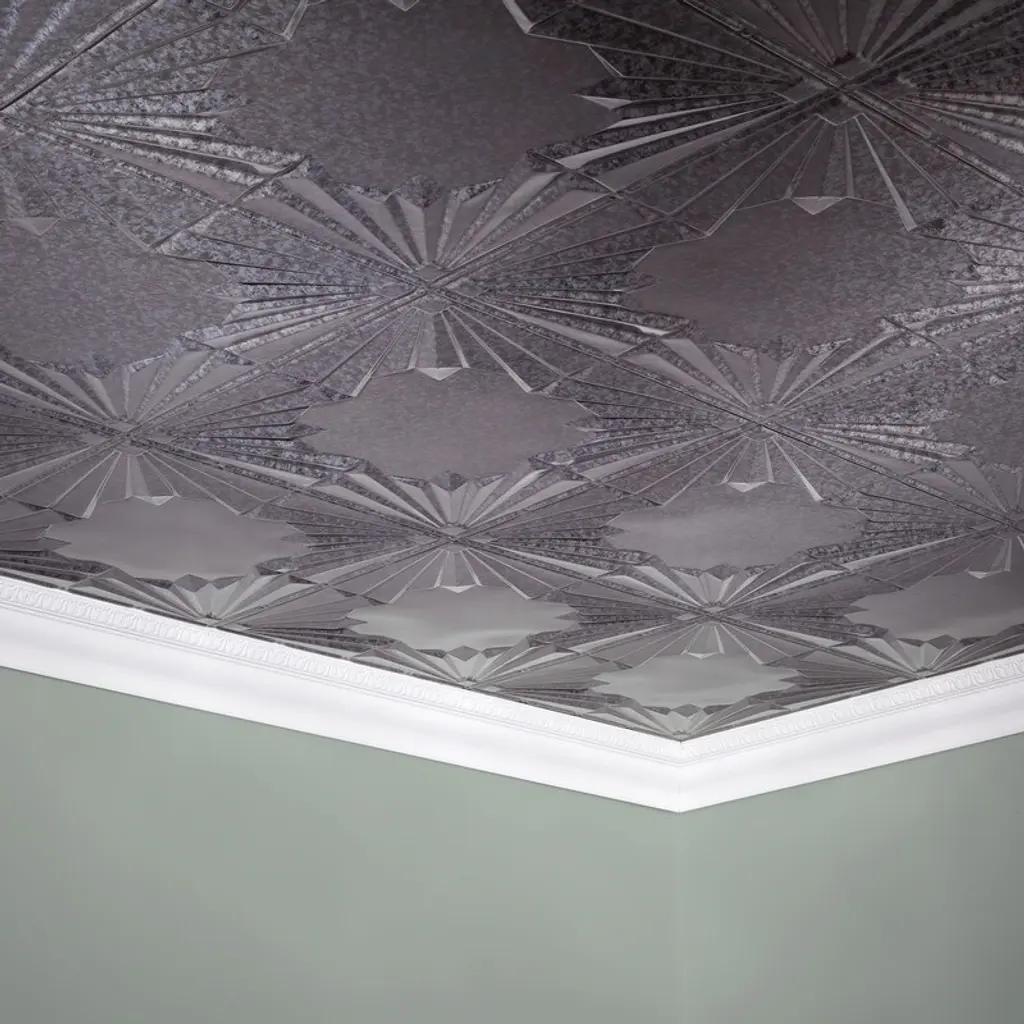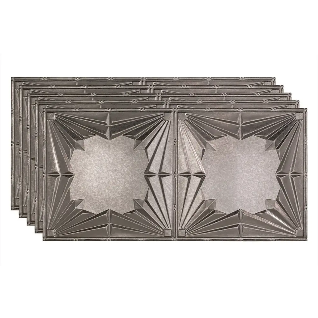 Fasäde Art Deco Decorative Vinyl 2Ft X 4Ft Glue Up Ceiling Panel In Galvanized Steel (5 Pack) - 12in X 12in Sample - Galvanized Steel