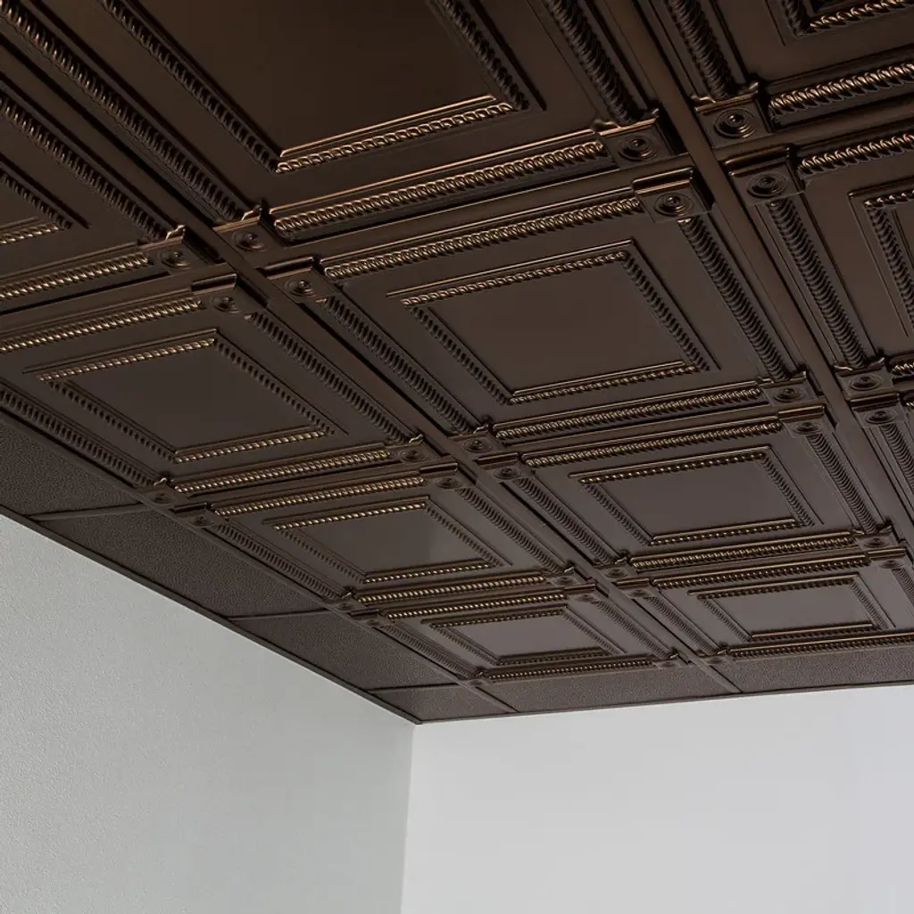 Fasäde Coffer Decorative Vinyl 2Ft X 2Ft Lay In Ceiling Panel In Oil Rubbed Bronze (5 Pack) - 12in X 12in Sample - Oil Rubbed Bronze