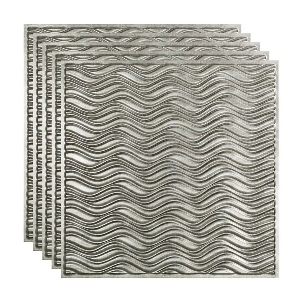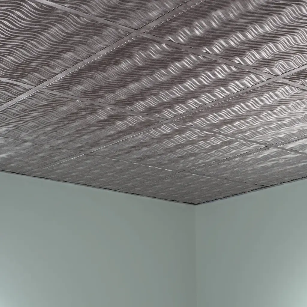 Fasäde Current Decorative Vinyl 2Ft X 2Ft Lay In Ceiling Panel In Crosshatch Silver (5 Pack) - 12in X 12in Sample - Crosshatch Silver