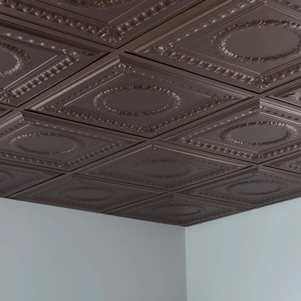 Fasäde Rosette Decorative Vinyl 2Ft X 2Ft Lay In Ceiling Panel In Argent Bronze (5 Pack) - 12in X 12in Sample - Argent Bronze