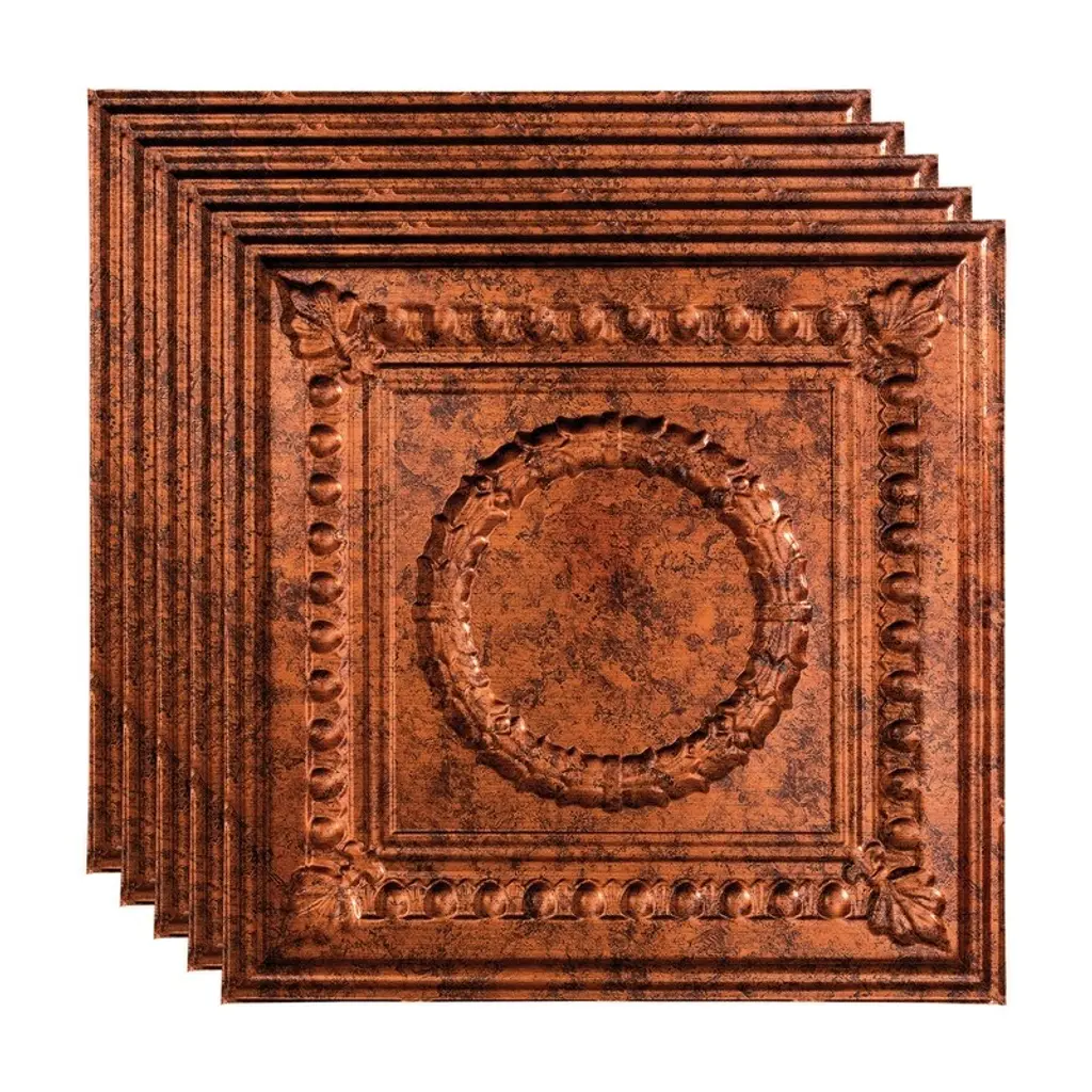 Fasäde Rosette Decorative Vinyl 2Ft X 2Ft Lay In Ceiling Panel In Moonstone Copper (5 Pack) - 12in X 12in Sample - Moonstone Copper