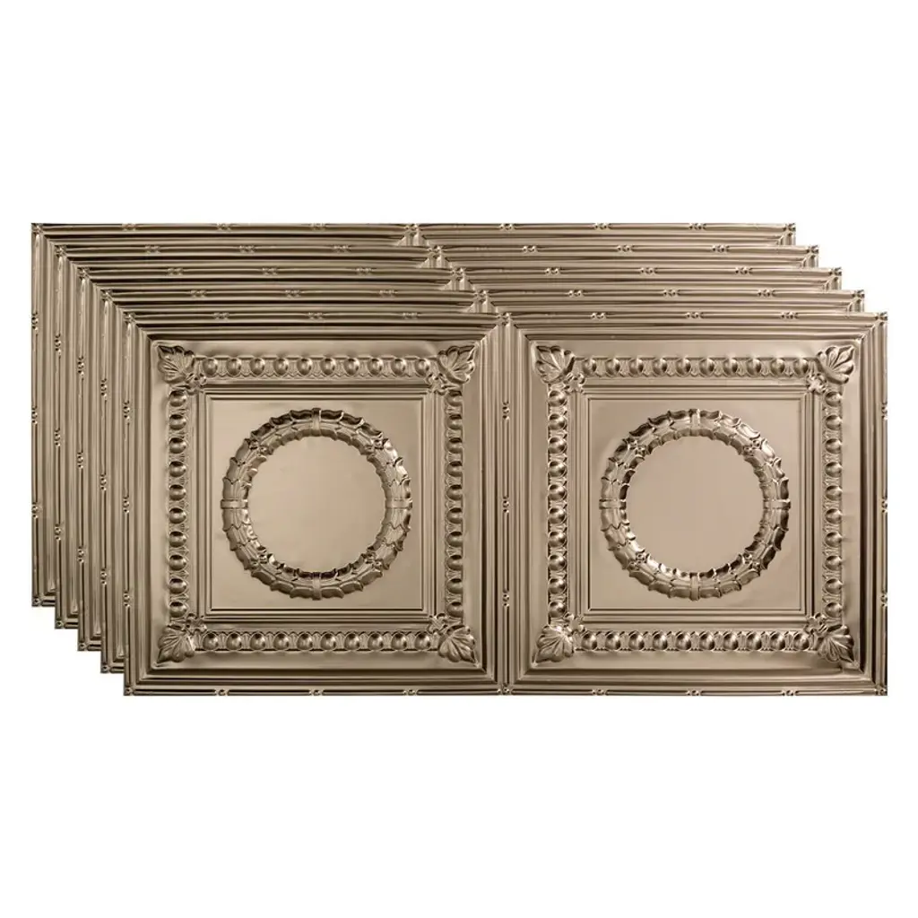 Fasäde Rosette Decorative Vinyl 2Ft X 4Ft Glue Up Ceiling Panel In Brushed Nickel (5 Pack) - 12in X 12in Sample - Brushed Nickel