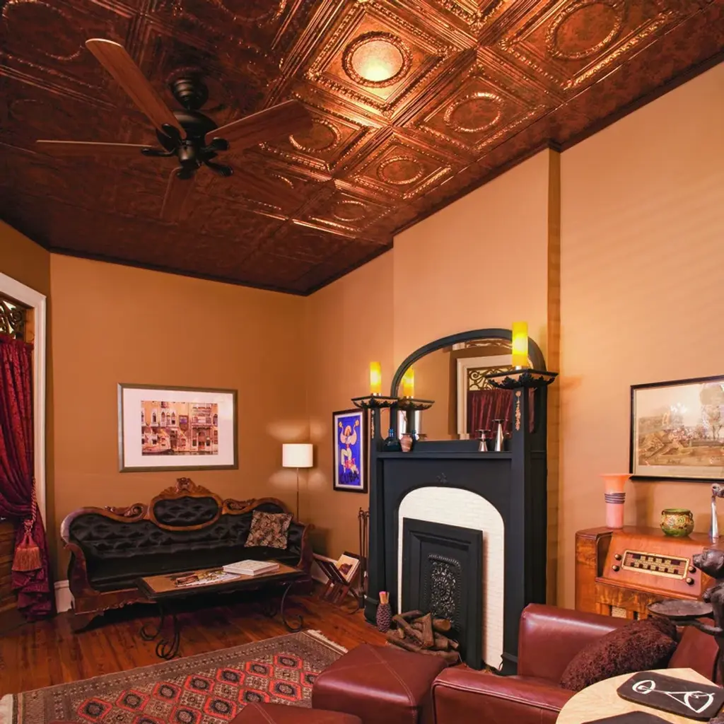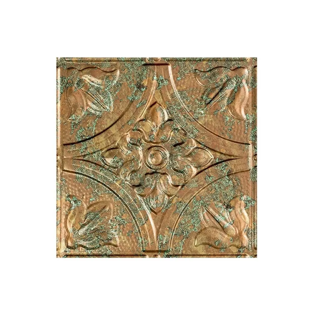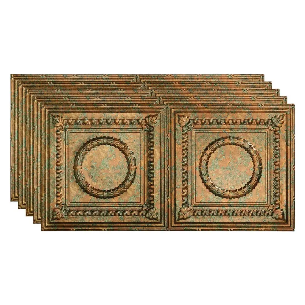 Fasäde Rosette Decorative Vinyl 2Ft X 4Ft Glue Up Ceiling Panel In Copper Fantasy (5 Pack) - 12in X 12in Sample - Copper Fantasy