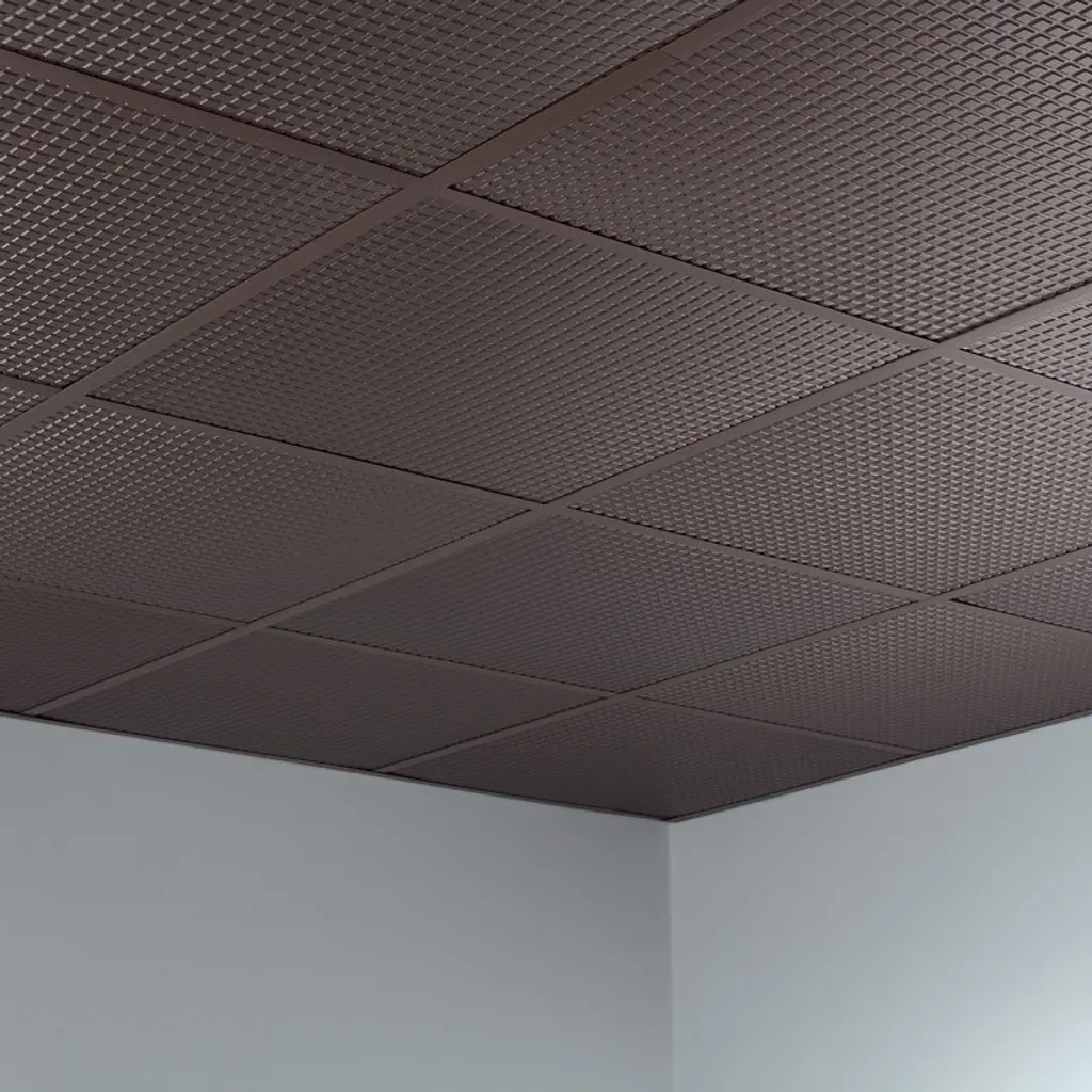 Fasäde Square Decorative Vinyl 2Ft X 2Ft Lay In Ceiling Panel In Argent Copper (5 Pack) - 12in X 12in Sample - Argent Bronze