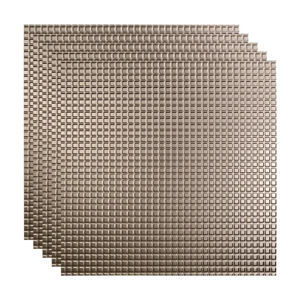 Fasäde Square Decorative Vinyl 2Ft X 2Ft Lay In Ceiling Panel In Brushed Nickel (5 Pack) - 12in X 12in Sample - Brushed Nickel
