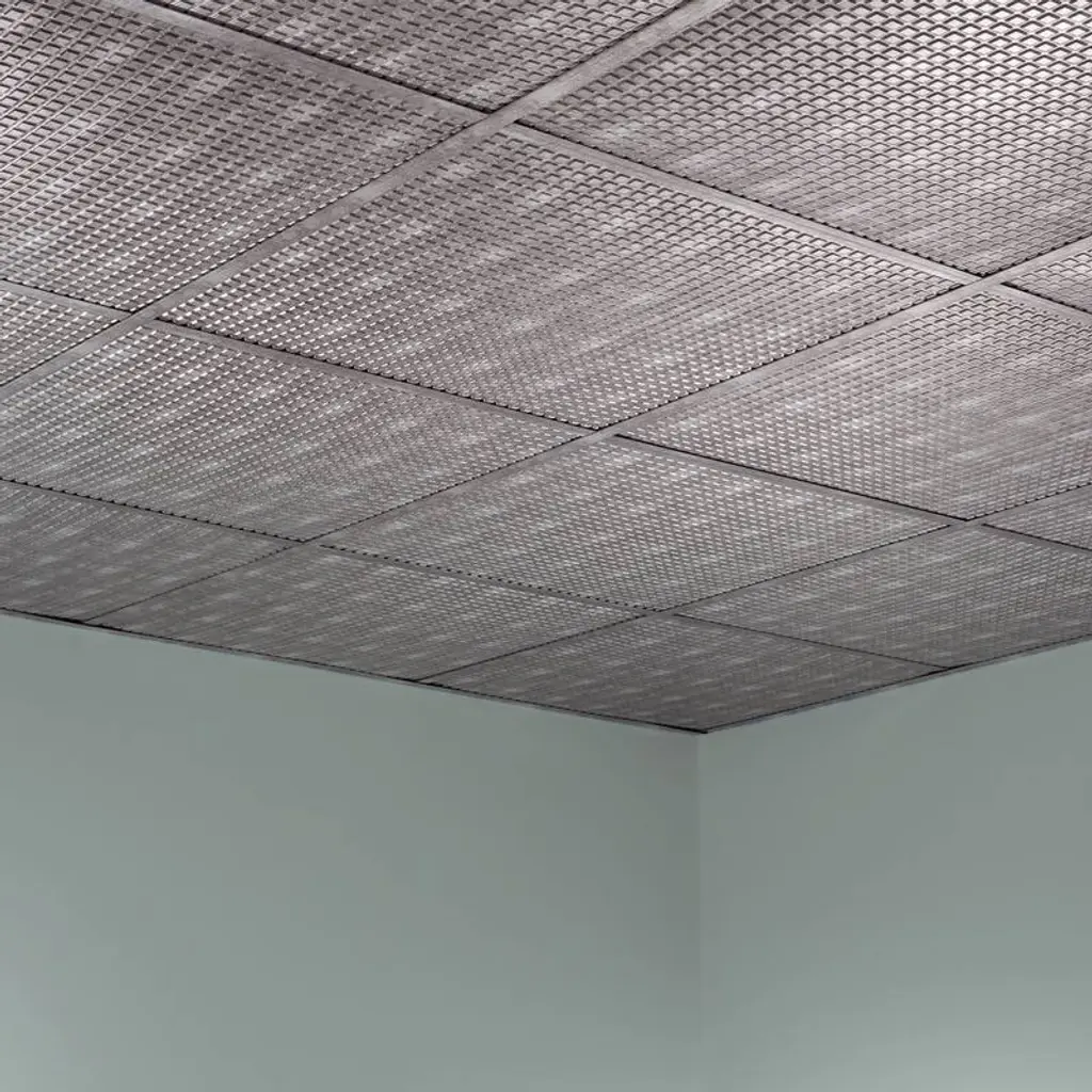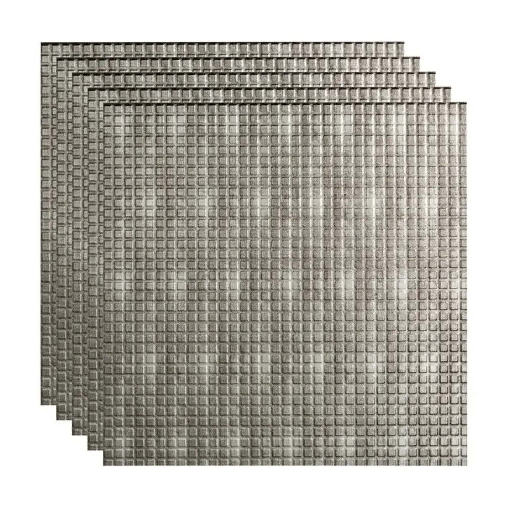 Fasäde Square Decorative Vinyl 2Ft X 2Ft Lay In Ceiling Panel In Crosshatch Silver (5 Pack) - 12in X 12in Sample - Crosshatch Silver