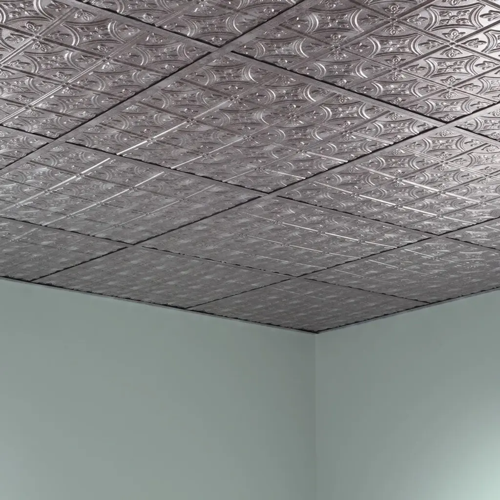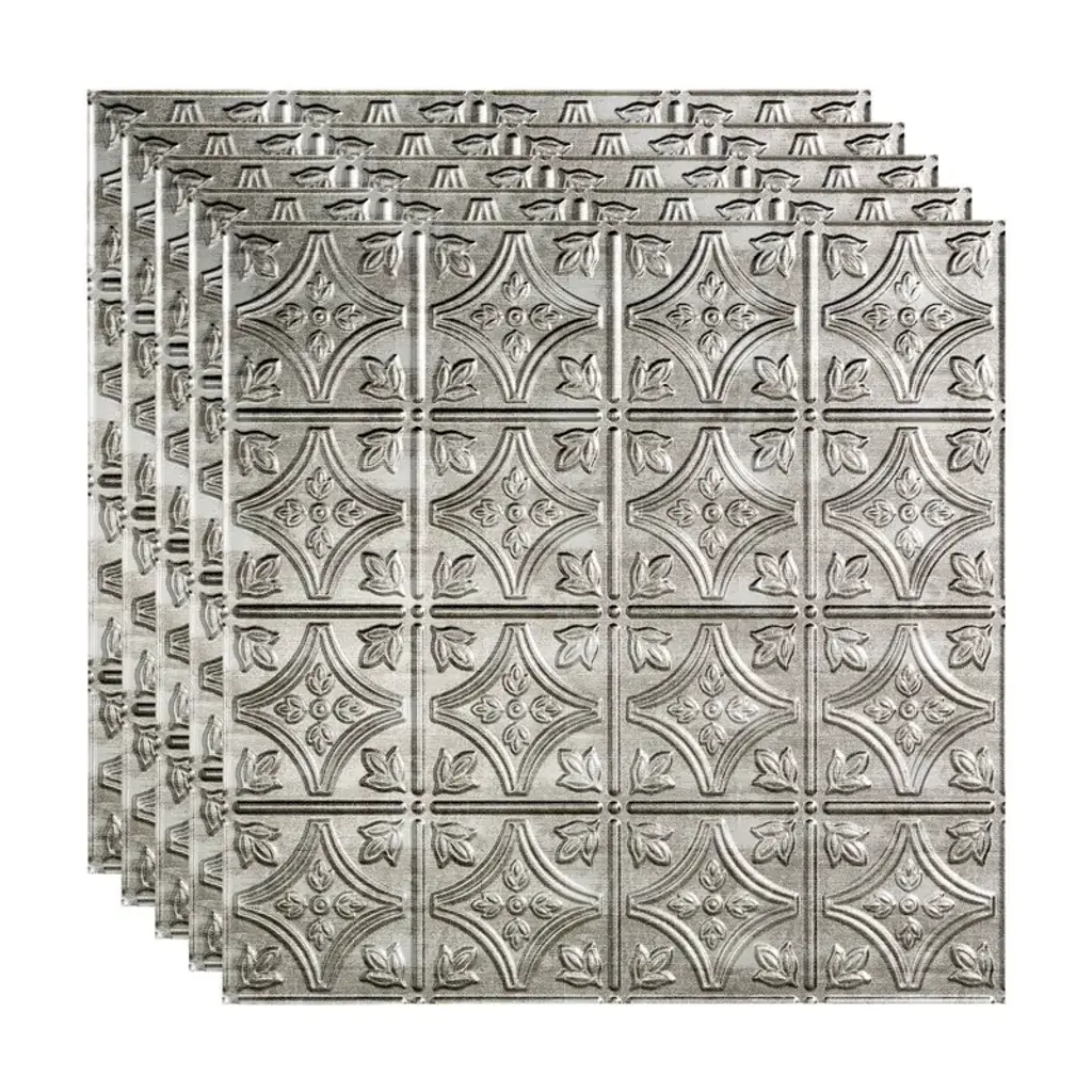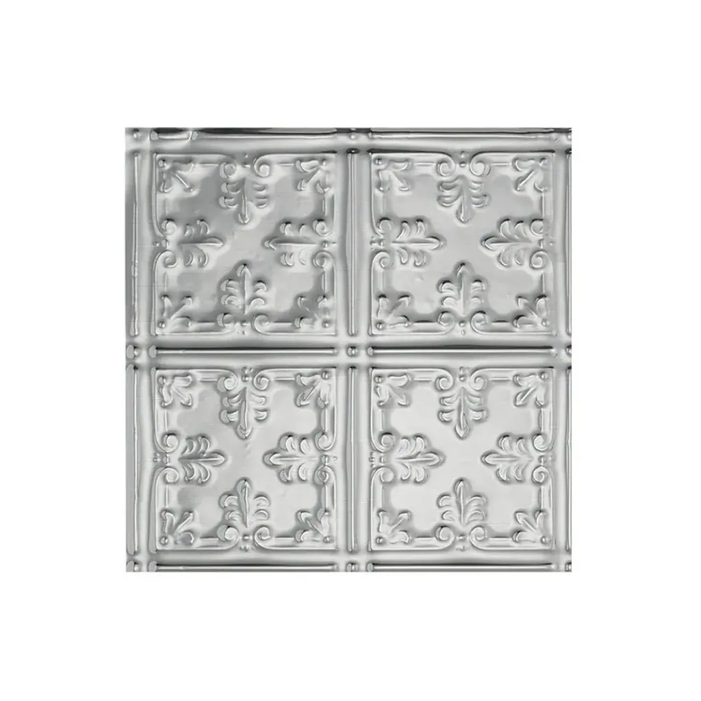 Fasäde Traditional Style 1 Decorative Vinyl 2Ft X 2Ft Lay In Ceiling Panel In Crosshatch Silver (5 Pack) - 12in X 12in Sample - Crosshatch Silver