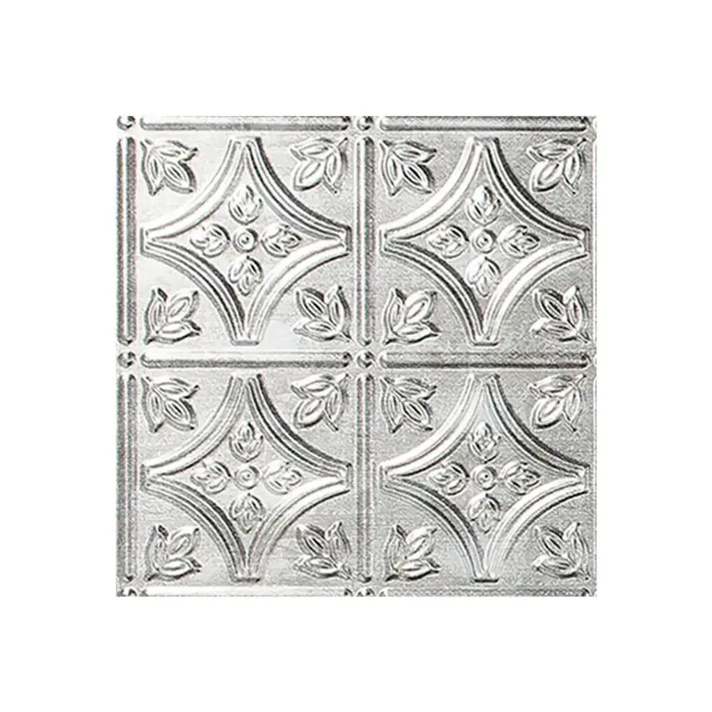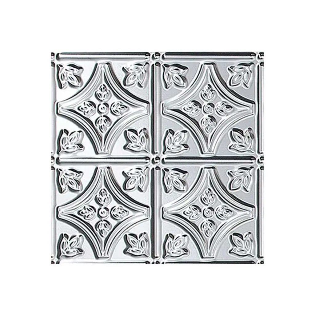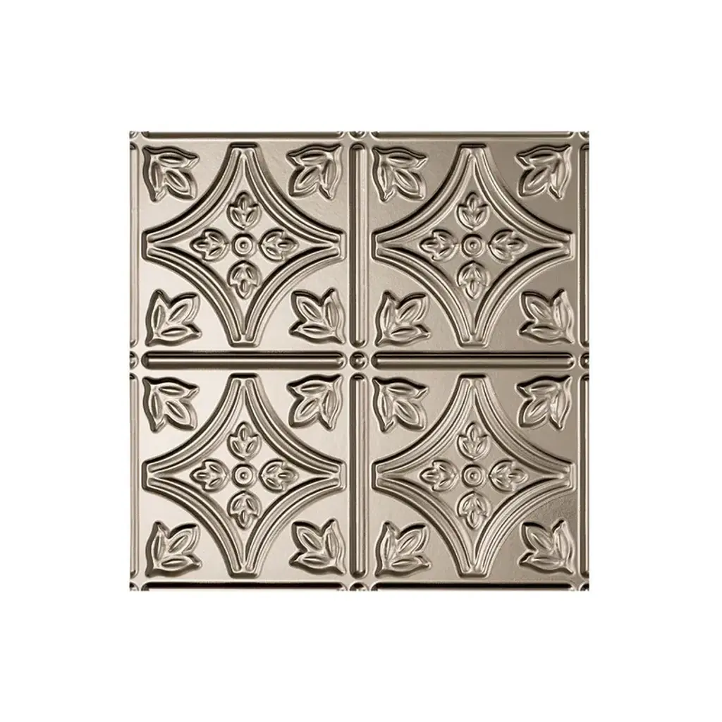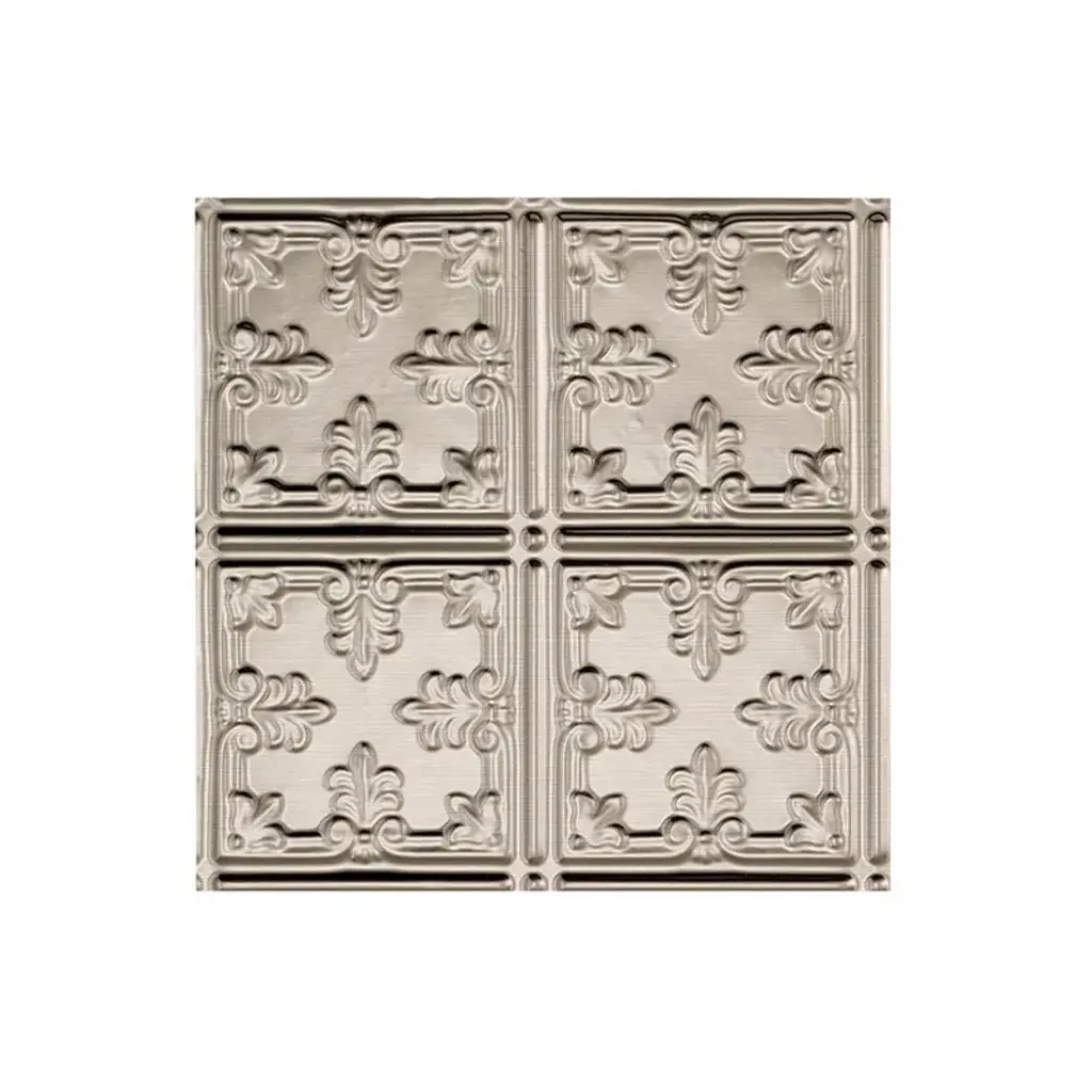 Fasäde Traditional Style 1 Decorative Vinyl 2Ft X 2Ft Lay In Ceiling Panel In Crosshatch Silver (5 Pack) - 12in X 12in Sample - Crosshatch Silver
