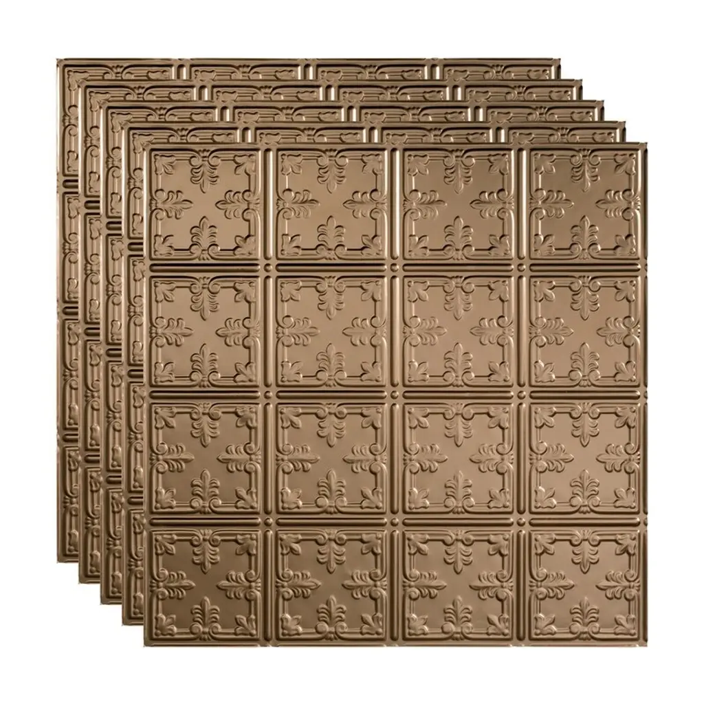 Fasäde Traditional Style 10 Decorative Vinyl 2Ft X 2Ft Lay In Ceiling Panel In Argent Bronze (5 Pack) - 12in X 12in Sample - Argent Bronze