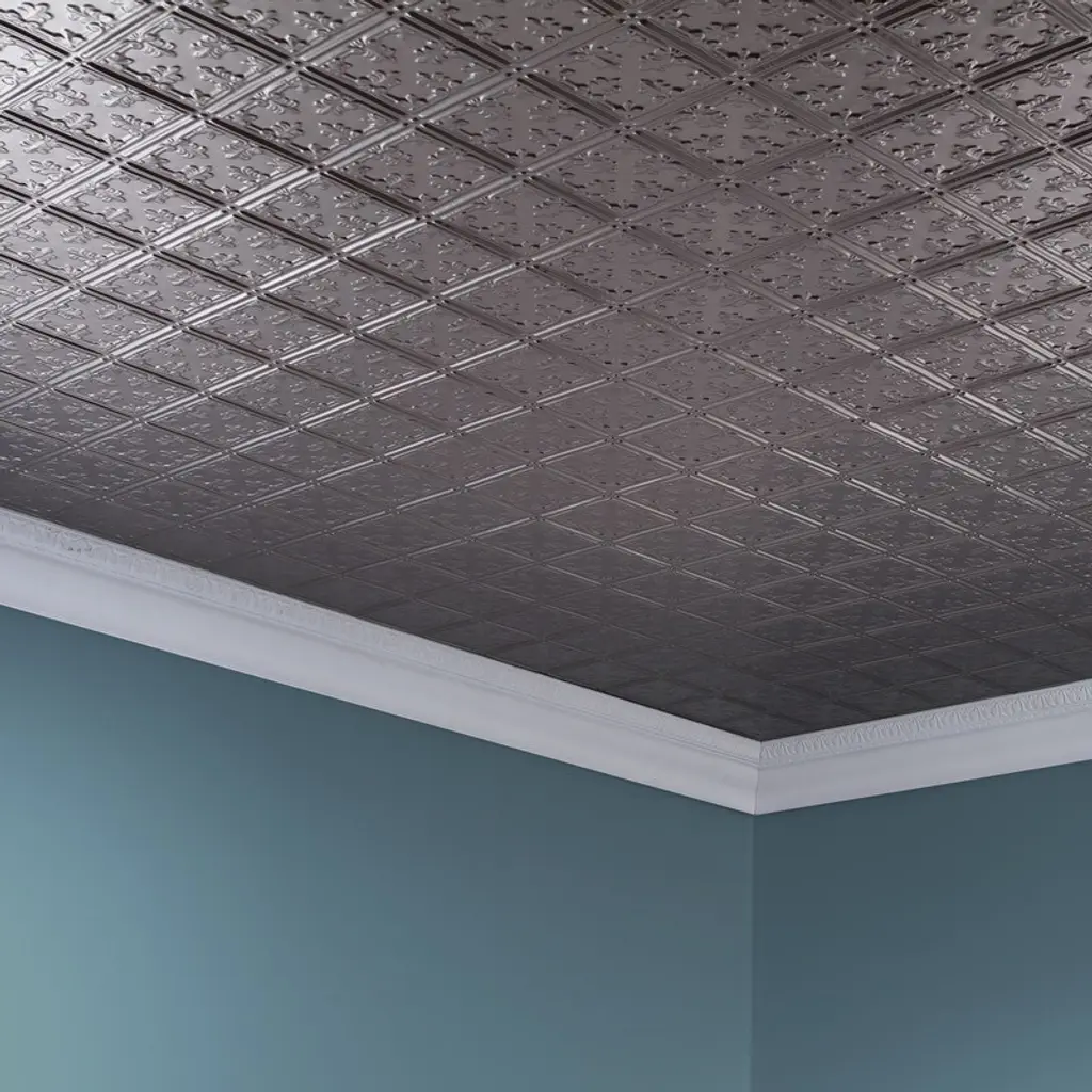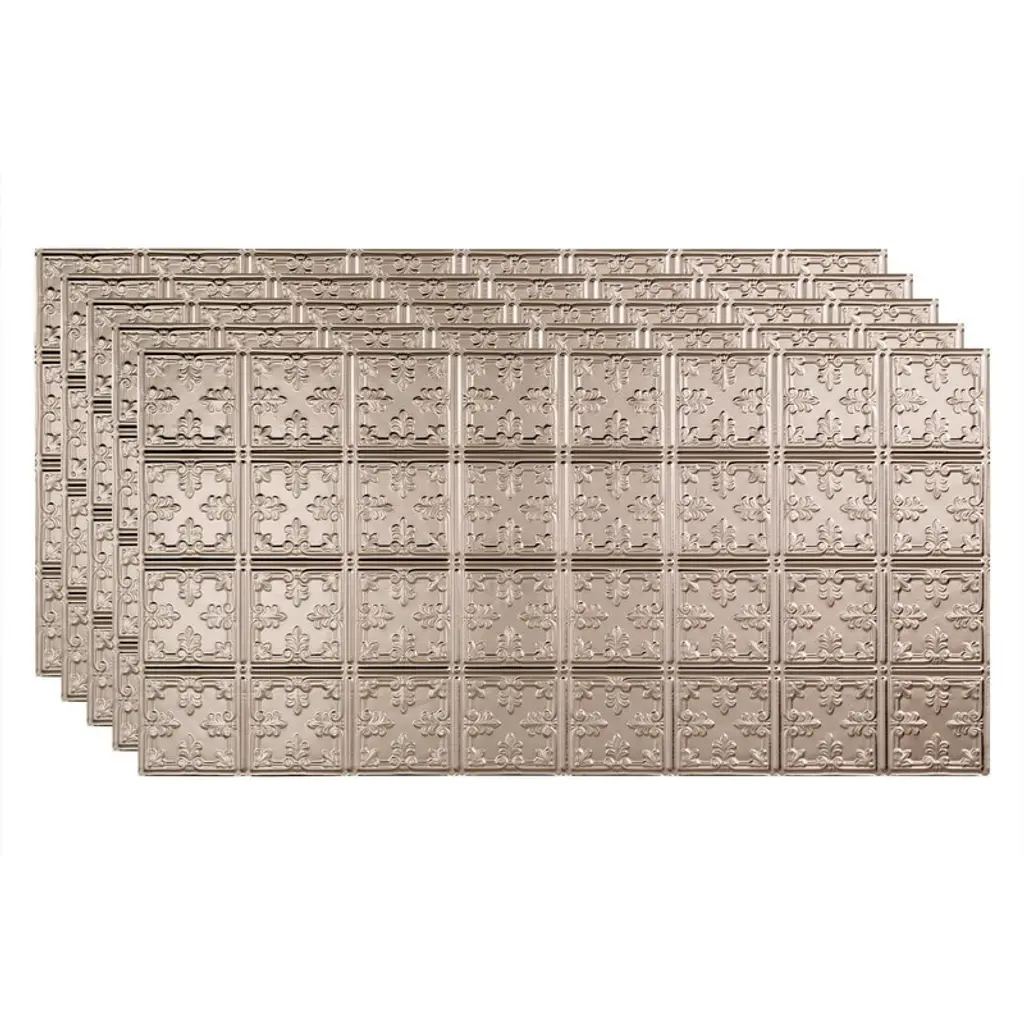 Fasäde Traditional Style 10 Decorative Vinyl 2Ft X 4Ft Glue Up Ceiling Panel In Brushed Nickel (5 Pack) - 12in X 12in Sample - Brushed Nickel