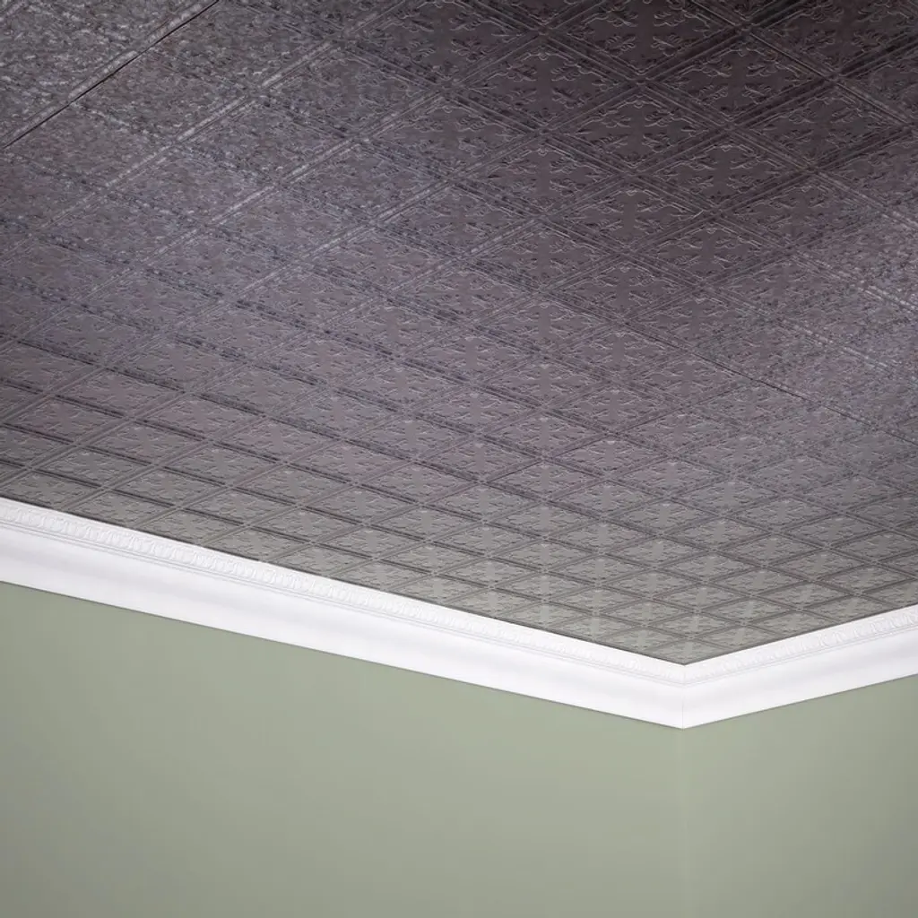 Fasäde Traditional Style 10 Decorative Vinyl 2Ft X 4Ft Glue Up Ceiling Panel In Galvanized Steel (5 Pack) - 12in X 12in Sample - Galvanized Steel