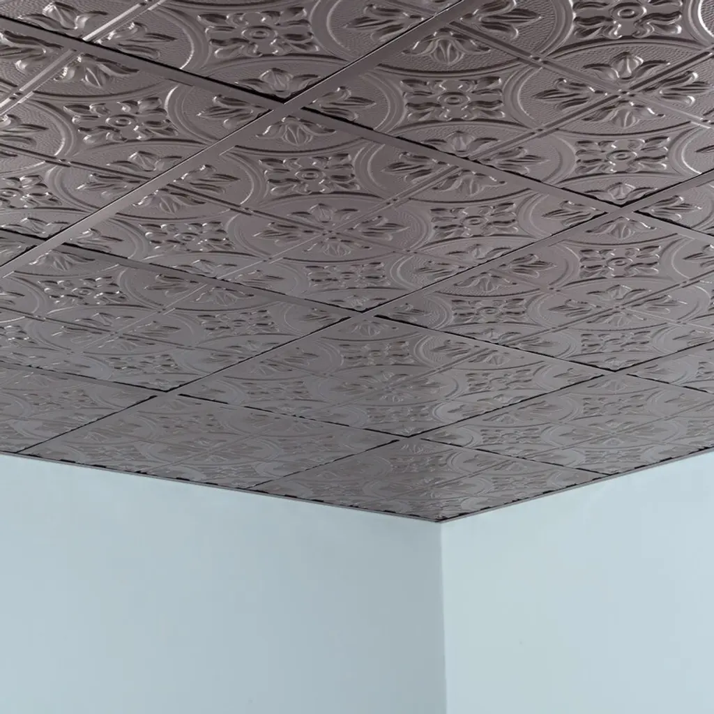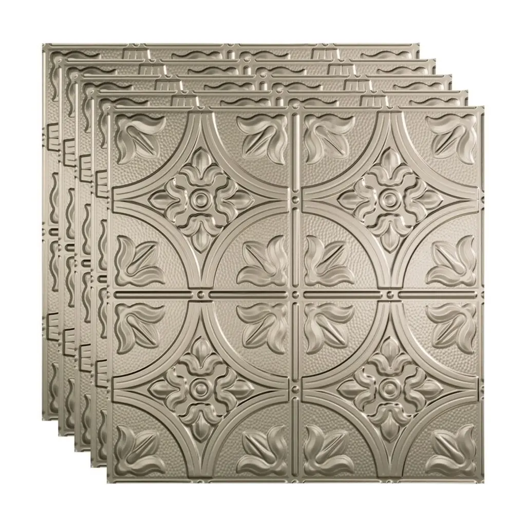 Fasäde Traditional Style 2 Decorative Vinyl 2Ft X 2Ft Lay In Ceiling Panel In Brushed Nickel (5 Pack) - 12in X 12in Sample - Brushed Nickel