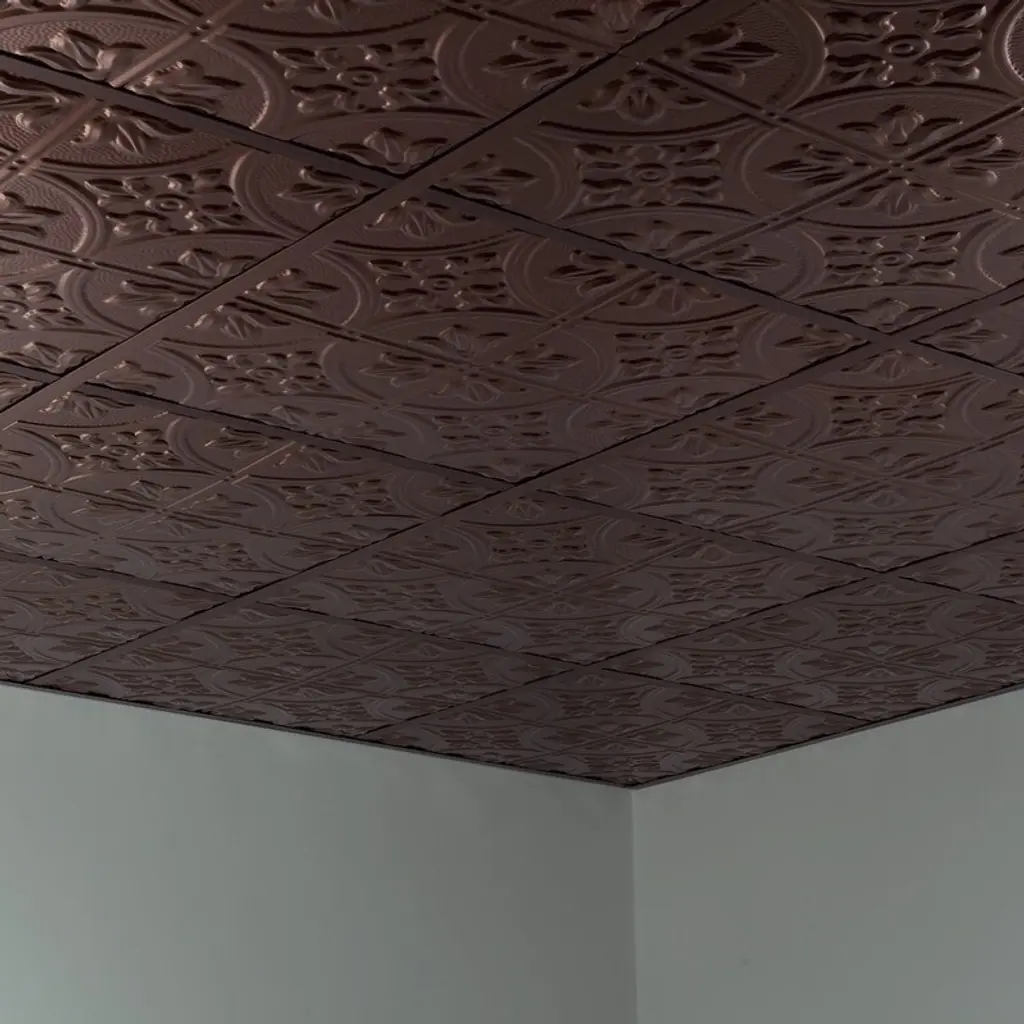 Fasäde Traditional Style 2 Decorative Vinyl 2Ft X 2Ft Lay In Ceiling Panel In Oil Rubbed Bronze (5 Pack) - 12in X 12in Sample - Oil Rubbed Bronze