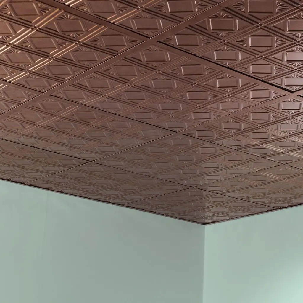 Fasäde Traditional Style 4 Decorative Vinyl 2Ft X 2Ft Lay In Ceiling Panel In Antique Bronze (5 Pack) - 12in X 12in Sample - Antique Bronze