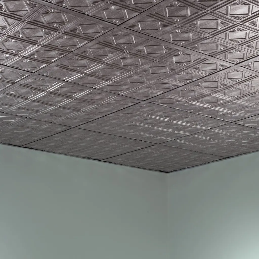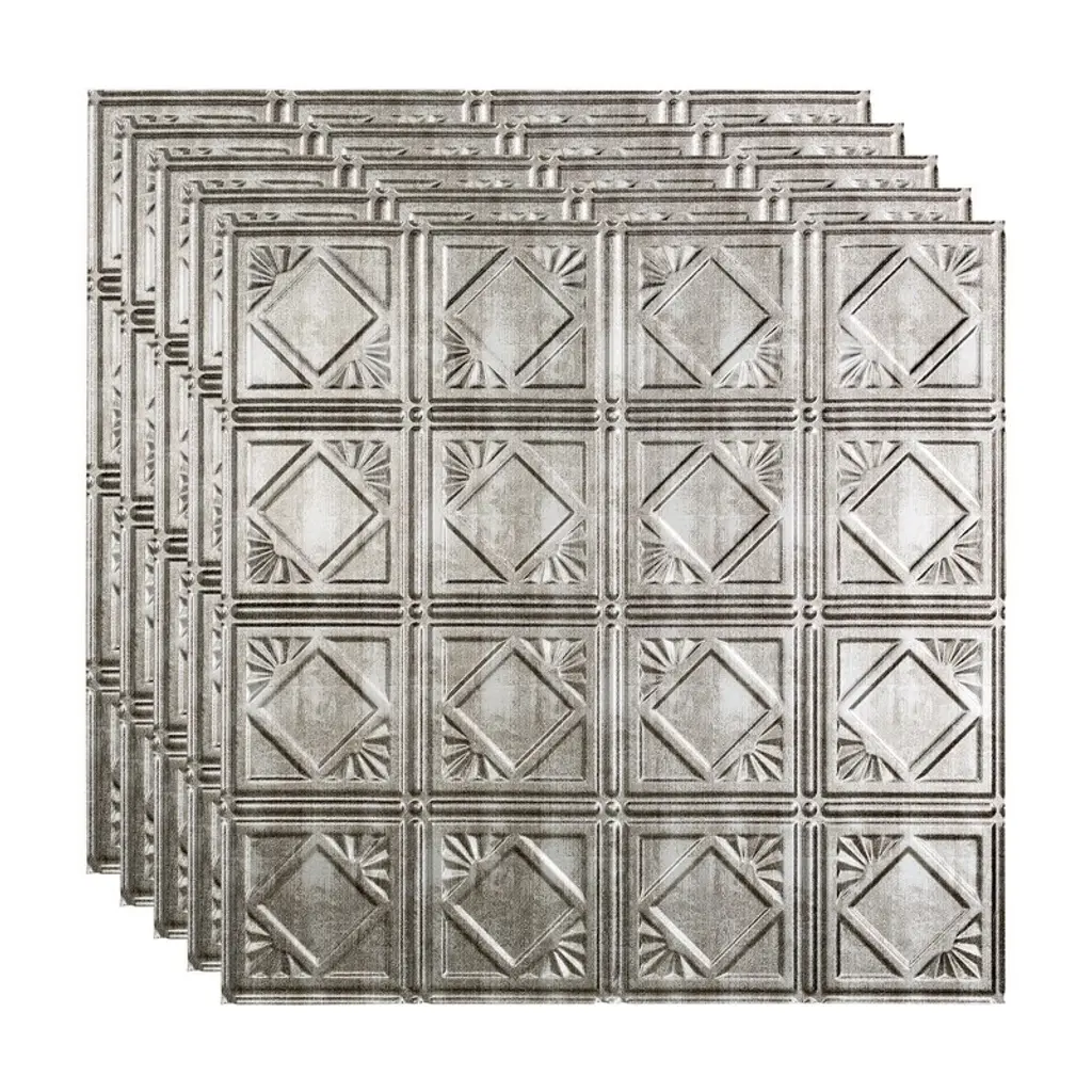 Fasäde Traditional Style 4 Decorative Vinyl 2Ft X 2Ft Lay In Ceiling Panel In Crosshatch Silver (5 Pack) - 12in X 12in Sample - Crosshatch Silver
