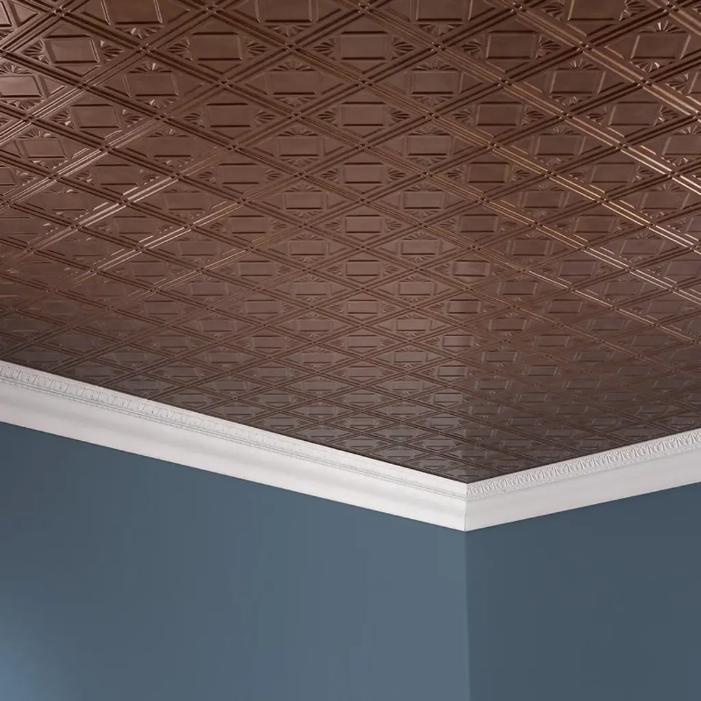 Fasäde Traditional Style 4 Decorative Vinyl 2Ft X 4Ft Glue Up Ceiling Panel In Antique Bronze (5 Pack) - 12in X 12in Sample - Antique Bronze