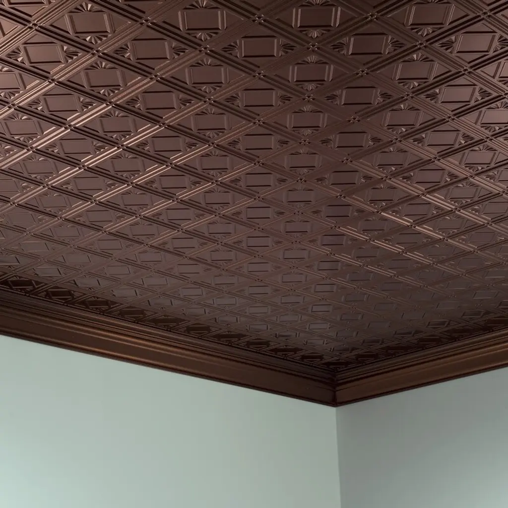 Fasäde Traditional Style 4 Decorative Vinyl 2Ft X 4Ft Glue Up Ceiling Panel In Oil Rubbed Bronze (5 Pack) - 12in X 12in Sample - Oil Rubbed Bronze