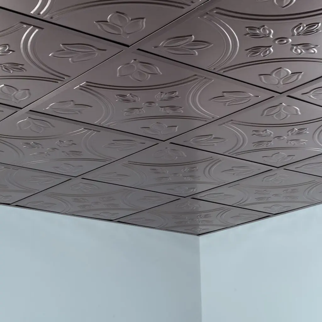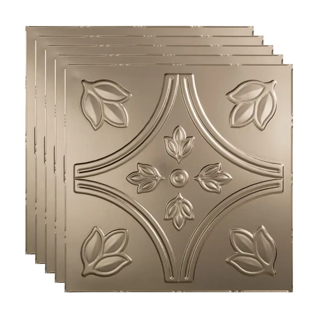 Fasäde Traditional Style 5 Decorative Vinyl 2Ft X 2Ft Lay In Ceiling Panel In Brushed Nickel (5 Pack) - 12in X 12in Sample - Brushed Nickel