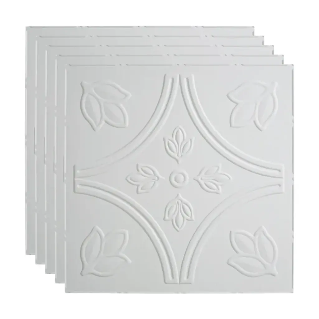 Fasäde Traditional Style 5 Decorative Vinyl 2Ft X 2Ft Lay In Ceiling Panel In Gloss White (5 Pack) - 12in X 12in Sample - Gloss White