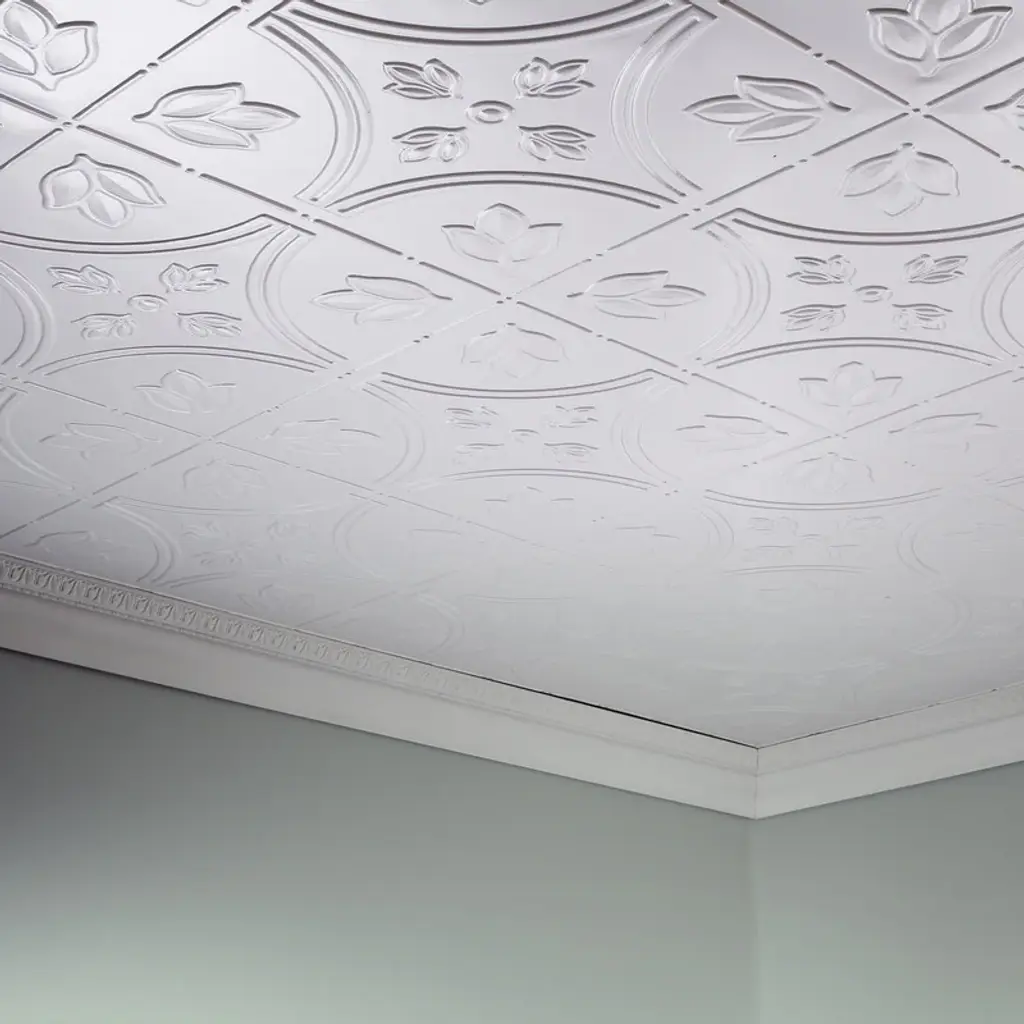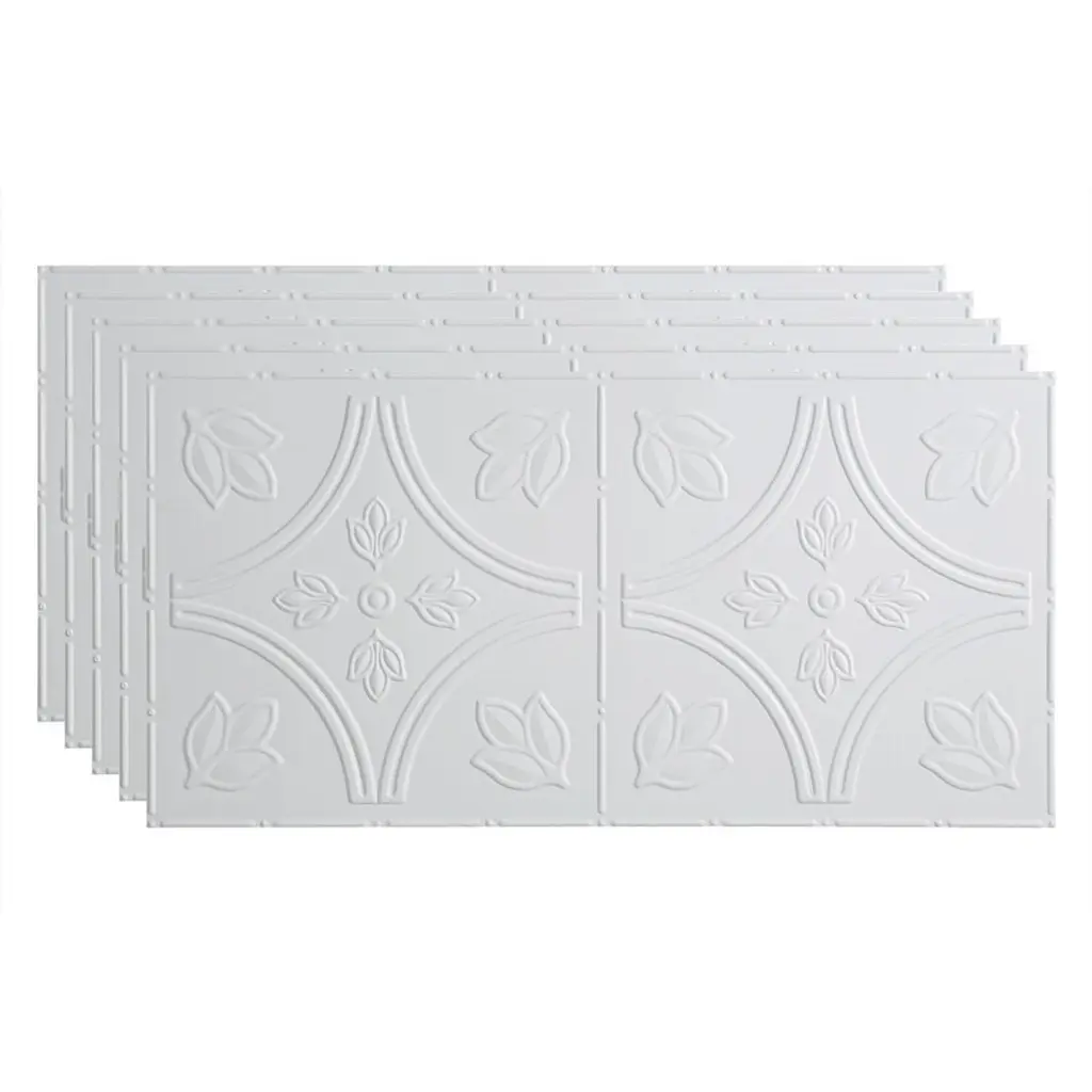 Fasäde Traditional Style 5 Decorative Vinyl 2Ft X 4Ft Glue Up Ceiling Panel In Matte White (5 Pack) - 12in X 12in Sample - Matte White