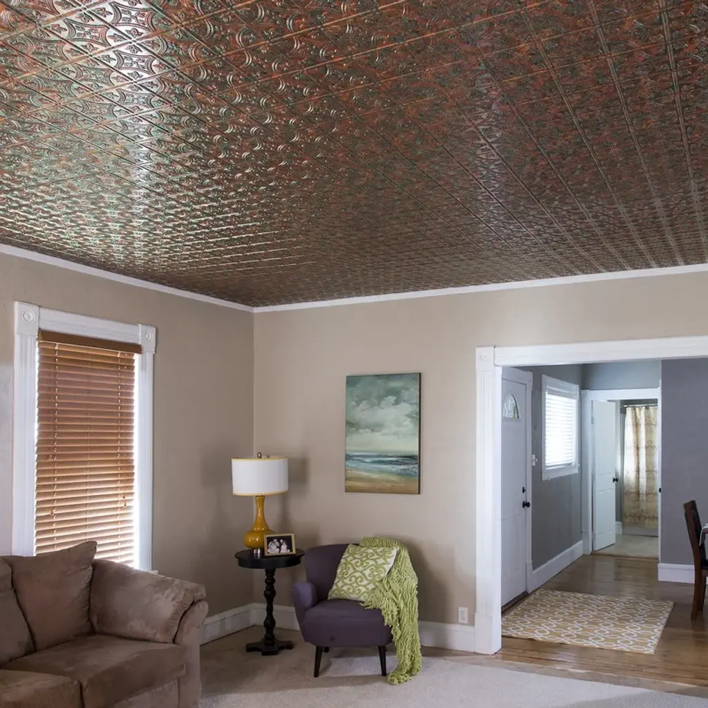 Fasäde Traditional Style1 Decorative Vinyl 2Ft X 4Ft Glue Up Ceiling Panel In Copper Fantasy (5 Pack) - 12in X 12in Sample - Copper Fantasy