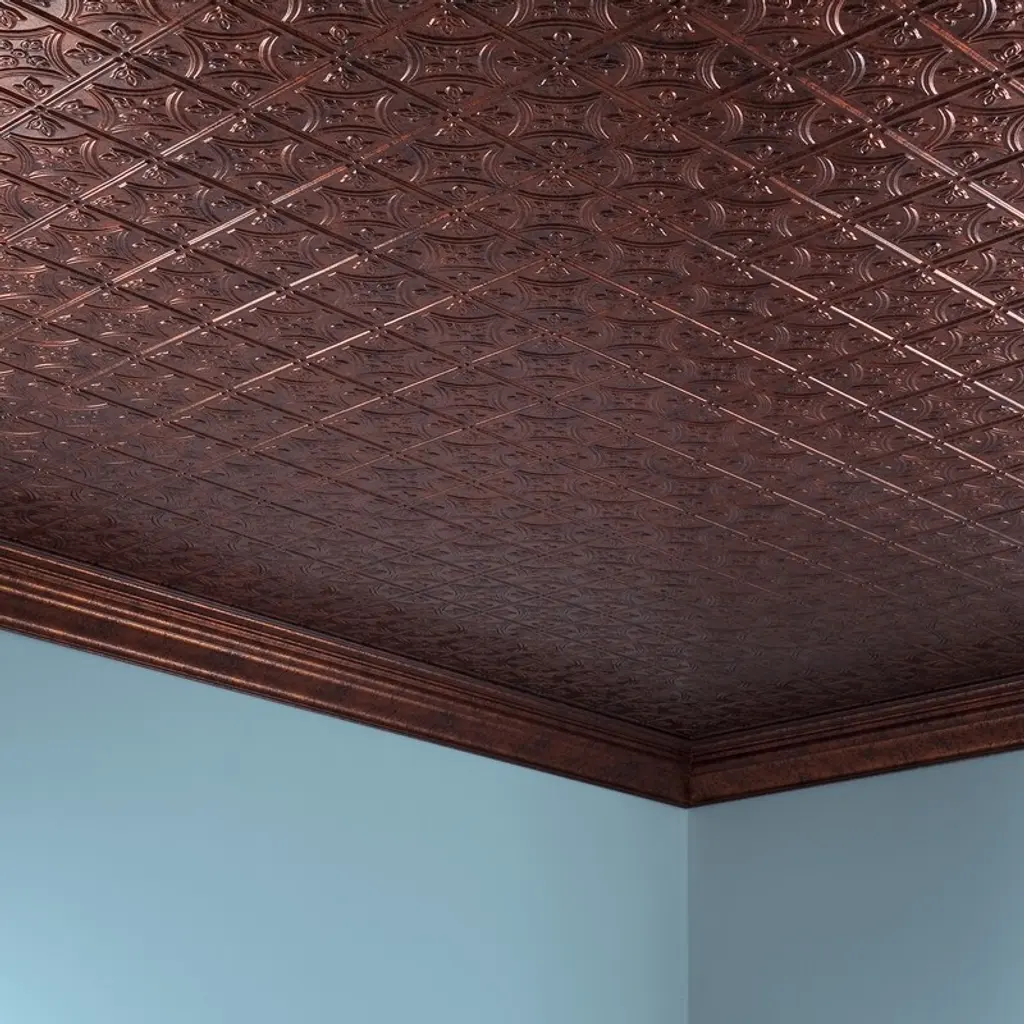 Fasäde Traditional Style1 Decorative Vinyl 2Ft X 4Ft Glue Up Ceiling Panel In Moonstone Copper (5 Pack) - 12in X 12in Sample - Moonstone Copper