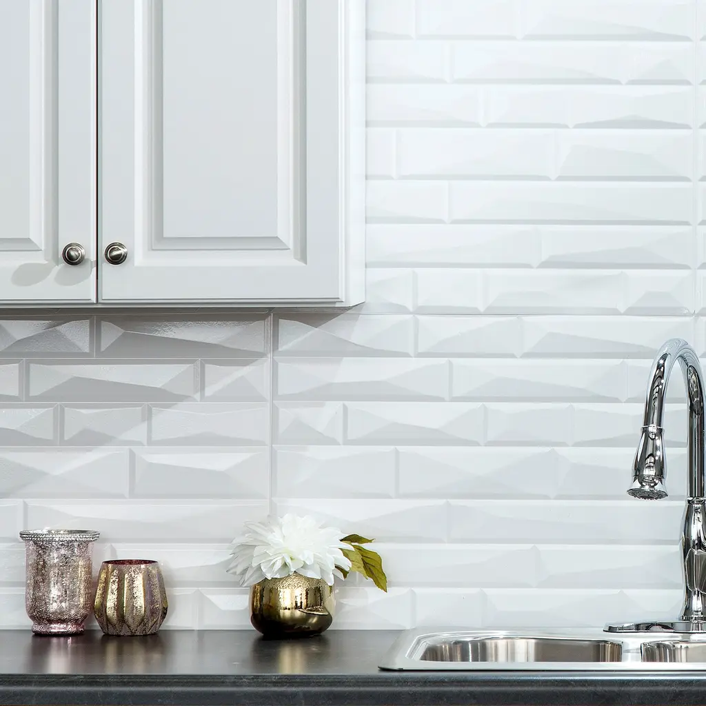 FASÄDE decorative vinyl backsplash panels are lightweight, flexible, and easy to install, allowing even the most novice DIY-ers to create beautiful and luxurious spaces in their homes! These versatile panels come in many different finishes and are easily cut to fit any size or shape area, giving you the power to update any room.